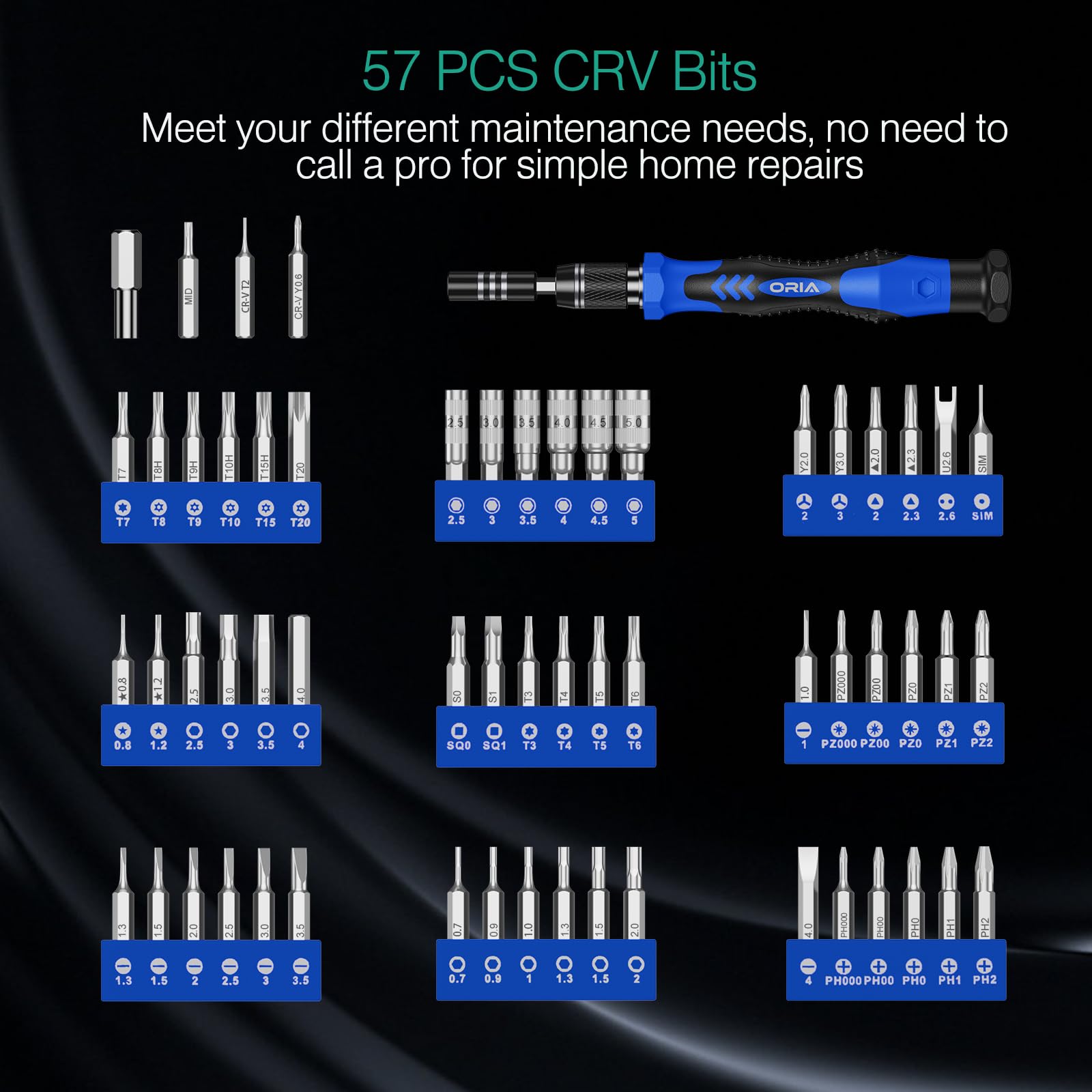 ORIA Precision Screwdriver Set, 61 in 1 Small Screwdriver Set with 57 Precision Bits, Portable Repair Tool Kit, Magnetic Screw Driver Kit with Extension Rod for Smartphone, PC, Watch,Toys, Blue