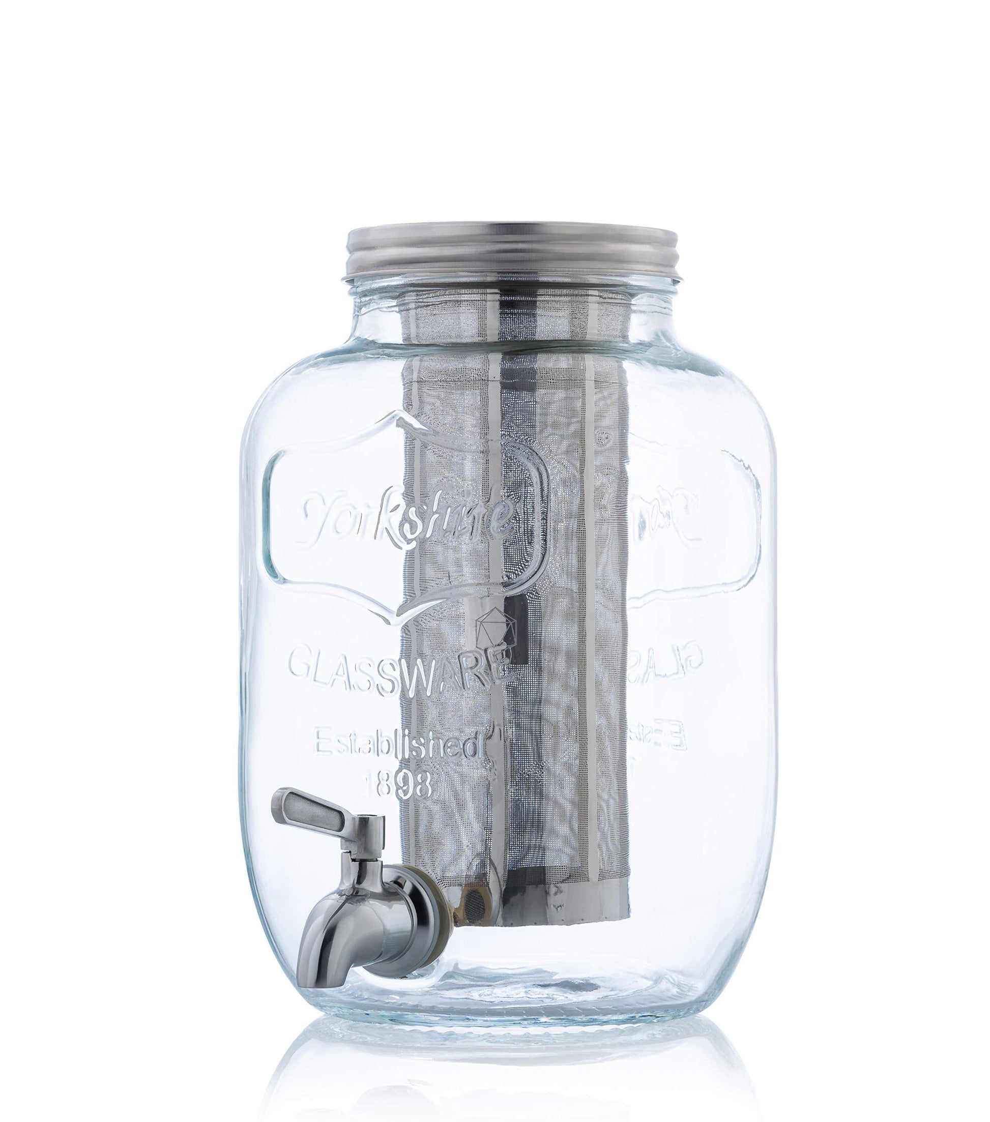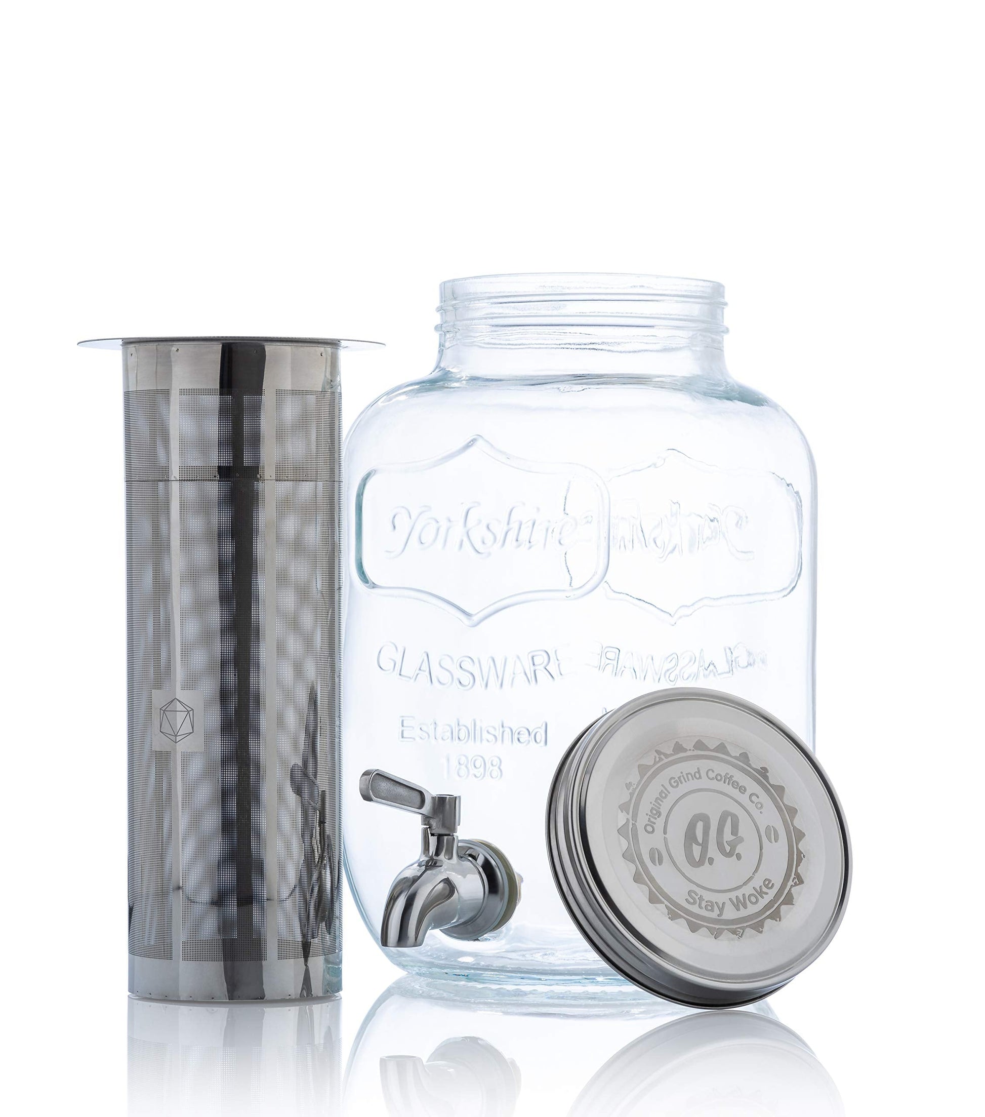 Original Grind Coffee Co.,1 Gallon Cold Brew Coffee Maker,Easy Pour Stainless Steel Spigot Tap,Extra Thick Glass Pitcher Brewing System Iced Coffee Maker,Refrigerator Safe Storage
