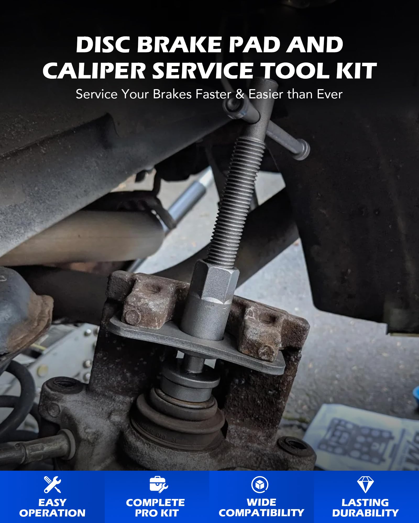 • Universal Compatibility: This brake caliper tool kit includes a wide range of adapters to fit most vehicles, including hundreds of American, Japanese, and European models, fully covering your brake servicing needs