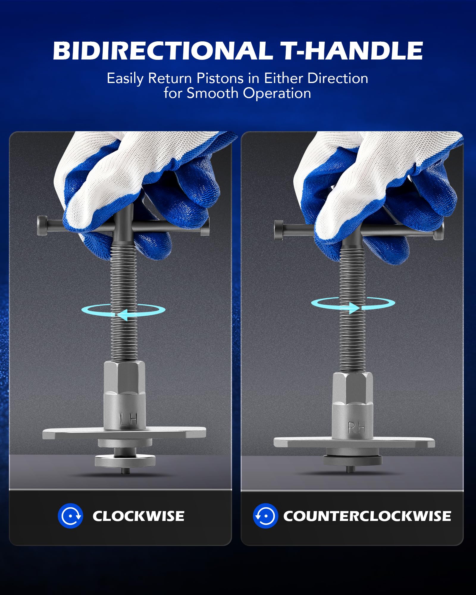 • Durable Construction: Crafted from heavy-duty 1045 steel, this caliper piston compressor tool set offers exceptional strength and durability, with a powder coating for enhanced wear and corrosion resistance