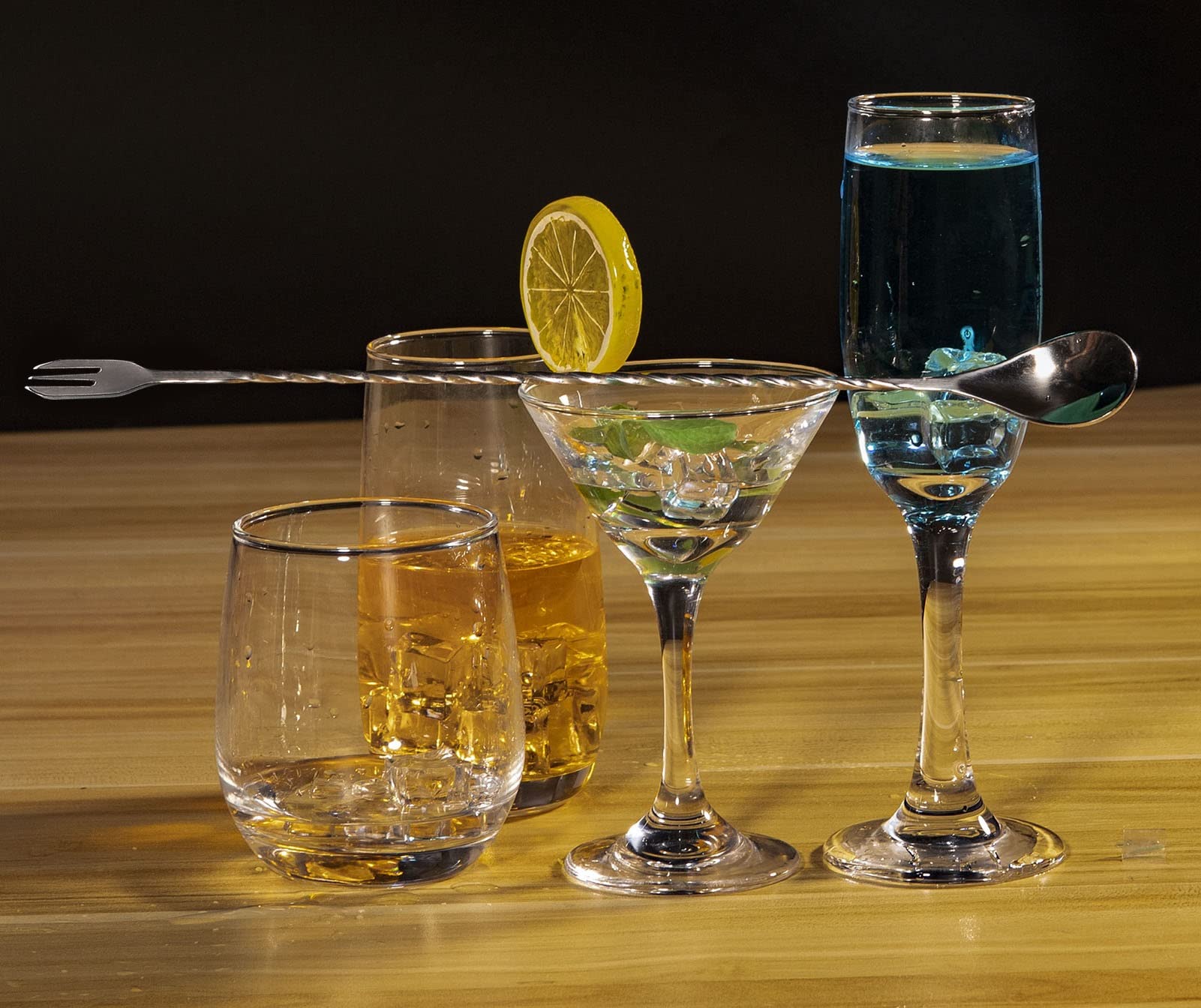 • TWO-IN-ONE BAR SPOON: The mixing spoon with fork is perfect for mixing, stirring, drainage and layering, the fork can fork up the fruit easily.