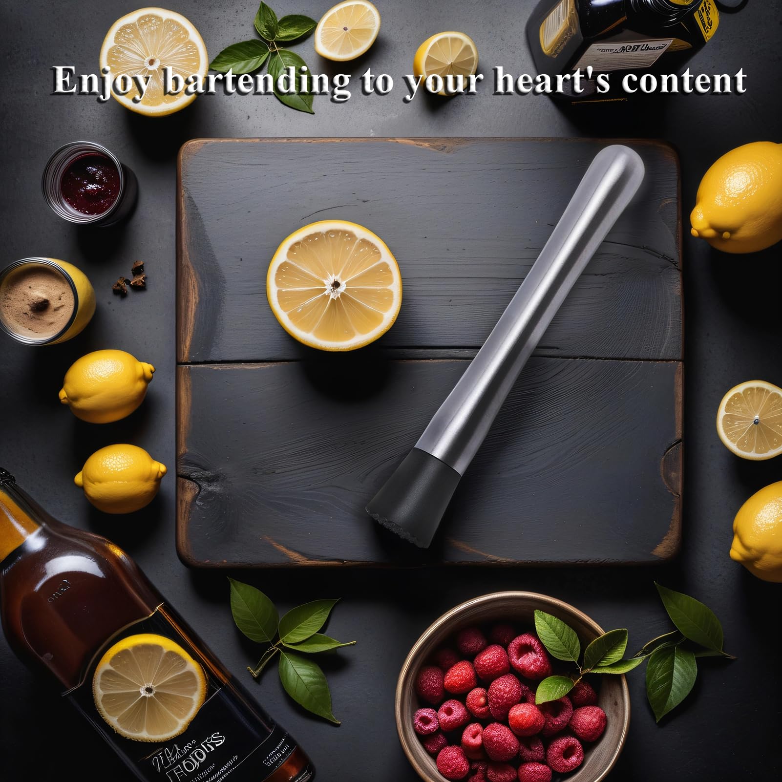 • THE MUST-HAVE SET FOR PRO AND HOME BAR: The grooved nylon head for muddler can easily mashes fruits herbs and spices.