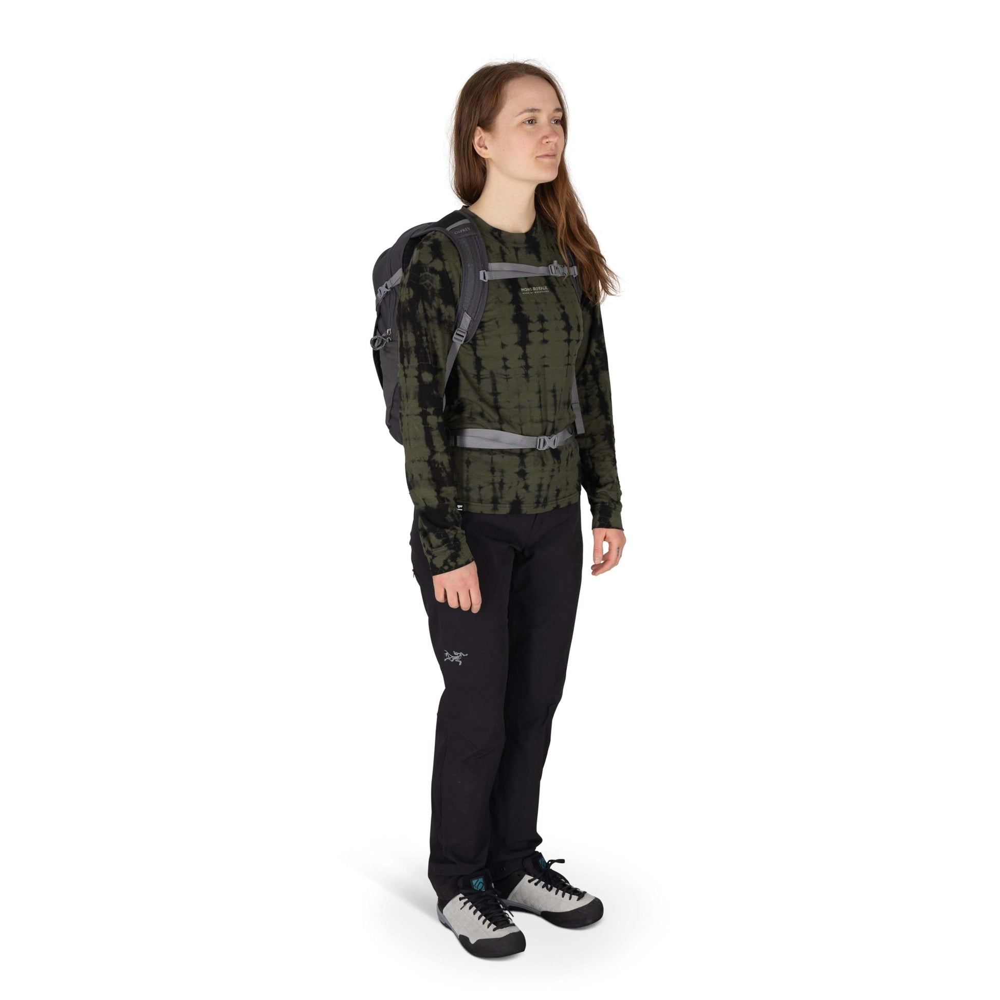 The Osprey Daylite Plus backpack offers a versatile, lightweight carry solution for your daily routine and spontaneous adventures. Designed with clean lines and sustainable materials, it easily transitions from casual hiking to farmers markets to travel. A padded internal sleeve protects a laptop and tablet, while a spacious main compartment holds books, layers, gym gear and more. Front and side stretch mesh pockets offer quick access to snacks, water bottles and extra gear. A breathable mesh-covered foam backpanel, padded harness and adjustable shoulder strap ensure stability and all-day comfort. Whether you're walking across campus, hopping on a flight or pedaling the bike path, the Daylite Plus adapts to your pace. It also integrates with several larger Osprey travel packs, for additional storage and carry options. Built to last from 100% recycled, bluesign APPROVED polyester main body fabric, with playful hues and prints to extend your personality and accentuate your style.