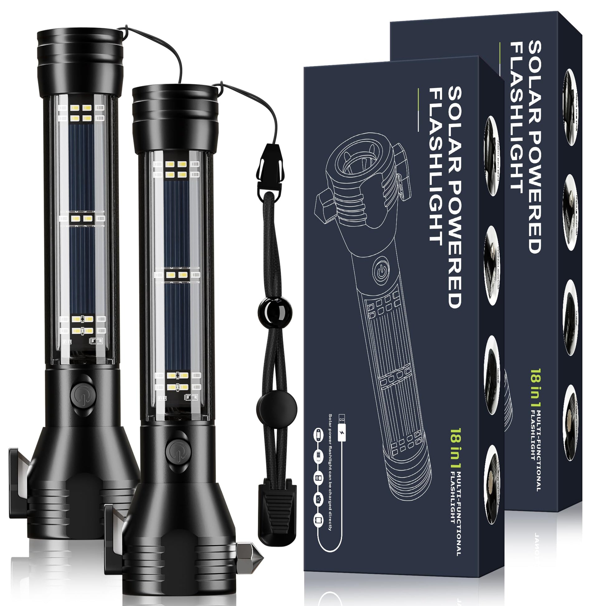 Otdair Solar/Rechargeable LED Flashlight, Multi Function Ultra Bright Flashlight, Emergency Strobe Light, USB-C Rechargeable, Survival Gear and Supplies, 5 Modes for Outdoor, Camping, Hiking, 2 Pack