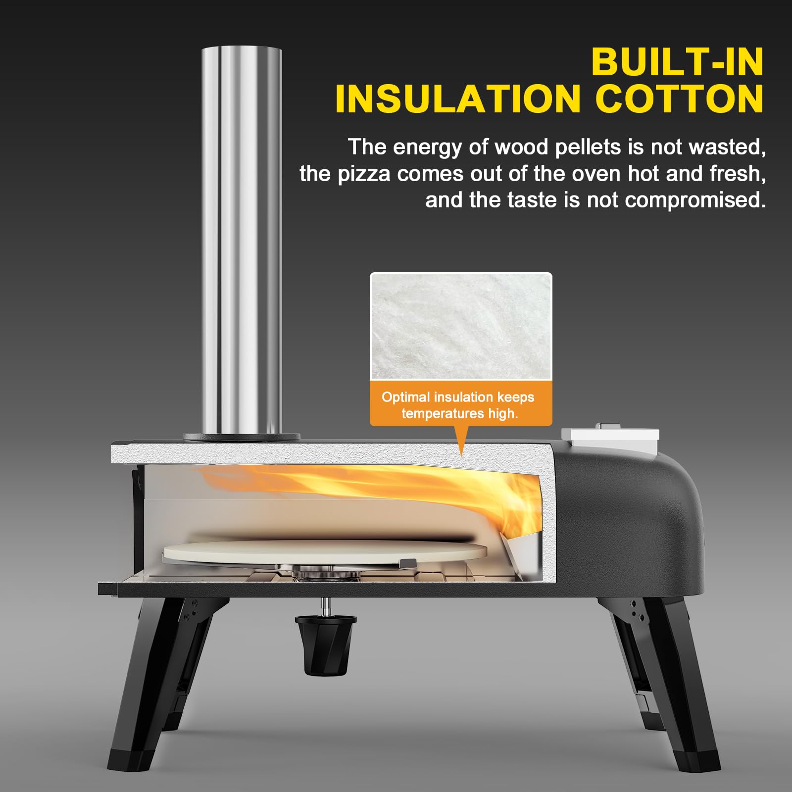 • 60-Second Authentic Pizza:Heat wood pellets for 15 minutes, then cook crispy stone-fired pizza in just 60 seconds. Perfect for backyard parties or camping trips