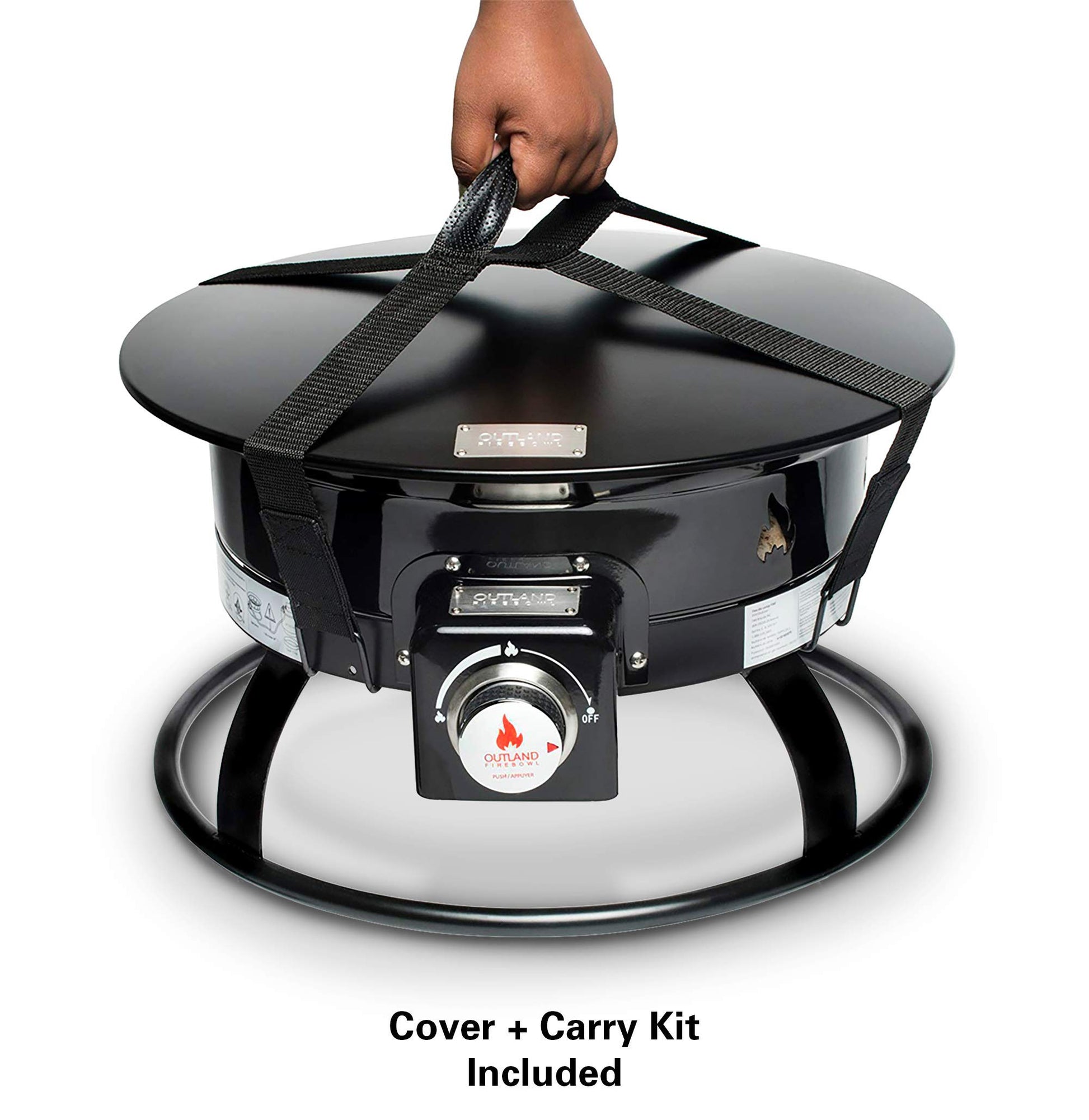 Outland Living Portable Propane Fire Pit, 19-inch, 58,000 BTU with Fire Pit Cover & Carry Kit, Smokeless Gas Firebowl | Perfect for Camping, Patio, Backyard, Tailgating, Deck, RV| Black 893 Deluxe