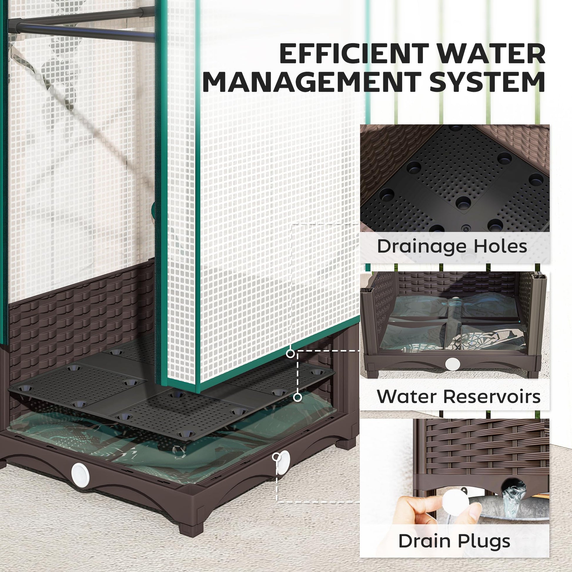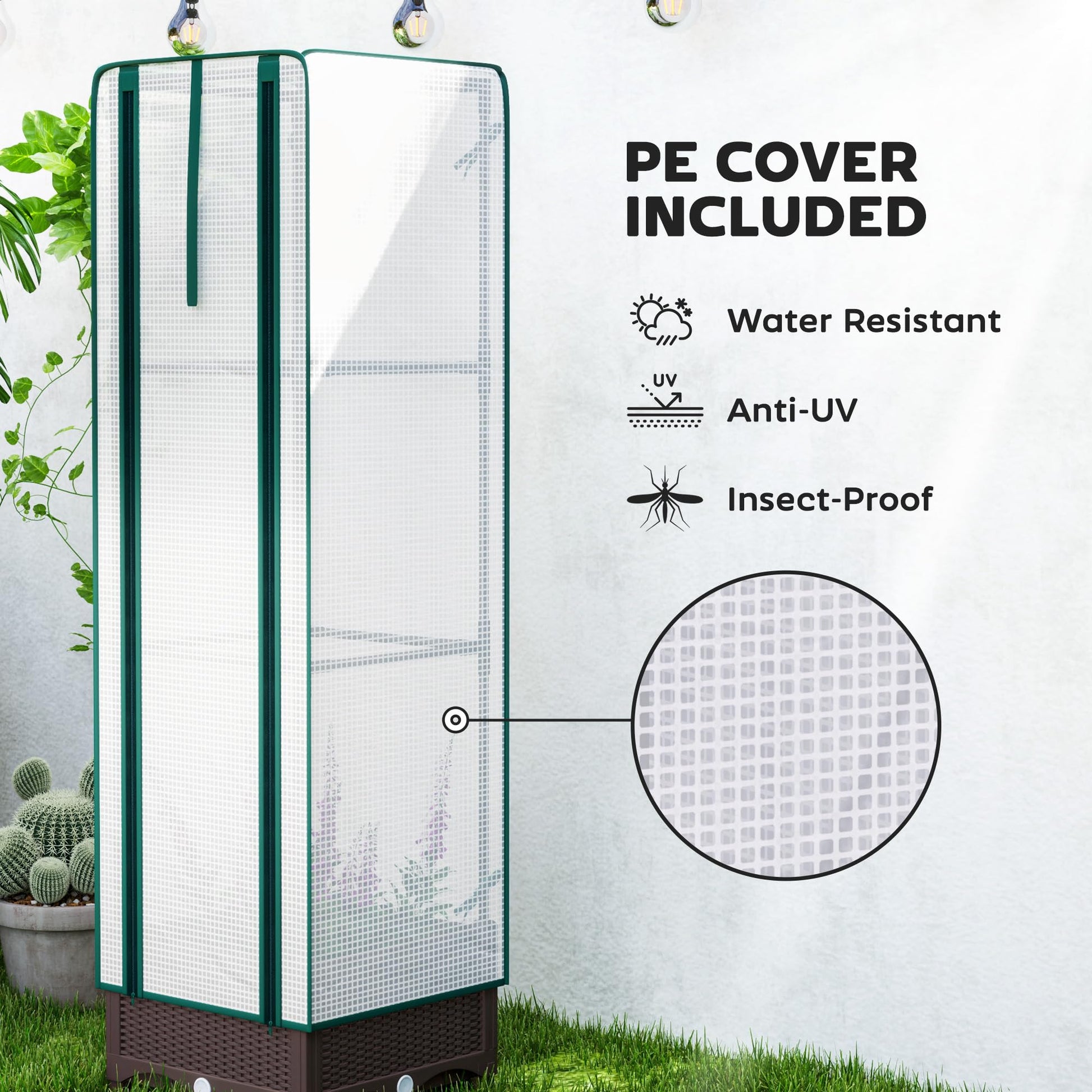 Outsunny Plastic Raised Garden Bed with Trellis, Outdoor Planter Box with PE Greenhouse Cover, Drainage Holes and Zipper Door for Climbing Plants, Herbs and Vegetables, 15.7" x 15.7" x 48.8", Brown