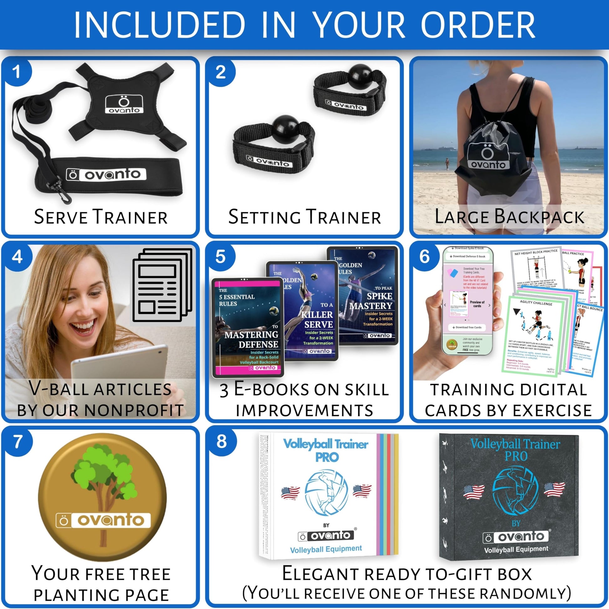 • Benefits of our Volleyball Equipment: Perfect your skills with our volleyball training gear and enrich your practice with unmatched Volleyball gifts, including 3 skill-enhancing e-books, insightful articles, your personal 'Plant a Tree' project initiative, and unique training digital cards. This portable set boosts agility and coordination, offering great value for every volleyball enthusiast.
