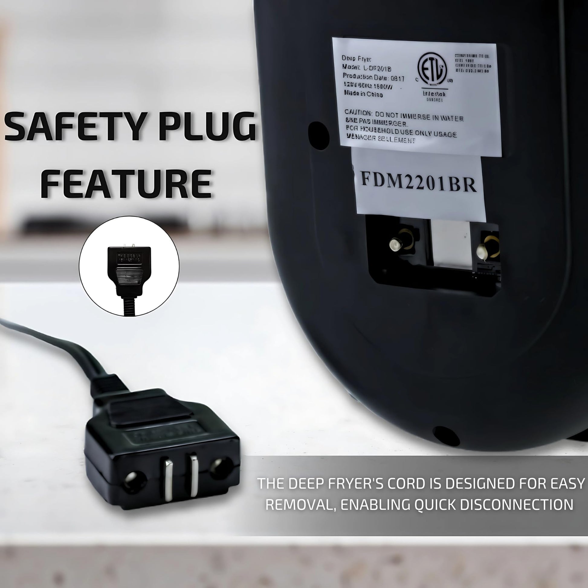SAFE & CONVENIENT – The deep fryer's cord is designed for easy removal, allowing for quick disconnection in emergency situations. Built with cool-touch handles, it provides a comfortable grip and protects you from burns. It also features LED indicator lights that illuminate red when the unit is heating up and green once the desired temperature is reached, ensuring complete peace of mind while you fry.