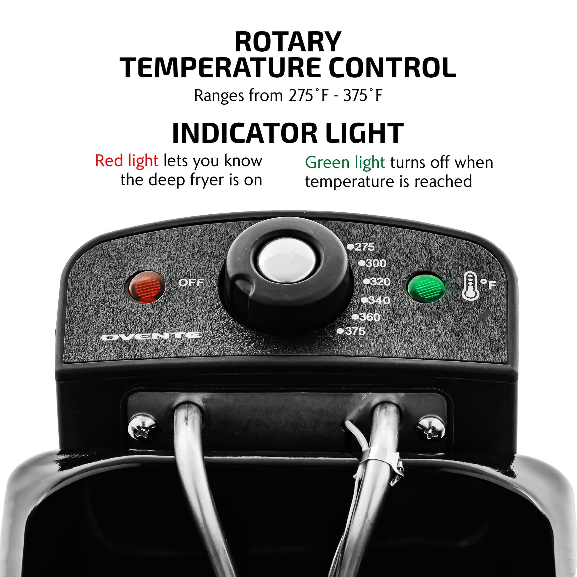 Details: Fry like a professional and satisfy your cravings with the OVENTE Electric Deep Fryer FDM2201BR model! Enjoy all your favorite snacks or meals like crispy buffalo wings, fish sticks, onion rings, shrimp tempura, egg rolls, pork chops, and more, all from the comfort of your home. This high-performance fryer features a thermostat knob that heats up to 375°F and a 2L oil tank capacity—enough to cook delicious deep-fried meals for your entire family. Designed to handle high temperatures, it also includes a viewing window so you can monitor the frying process and achieve that perfect golden-brown, crispy finish. For best results, use oil with a high smoke point and neutral flavor, such as vegetable, peanut, or grapeseed oil. To avoid overcrowding and maintain the perfect frying temperature, fry in batches. The deep fryer features a large basket, a locking lid for a mess-free frying experience, and a convenient resting hook for easy oil drainage. Plus, its cool-touch handle ensures safety while handling the hot basket. Cleanup is hassle-free with a non-stick cooking container and the removable frying basket is dishwasher safe. With its sleek brushed stainless steel exterior, this deep fryer is a stylish addition to any modern kitchen, combining both functionality and elegance.