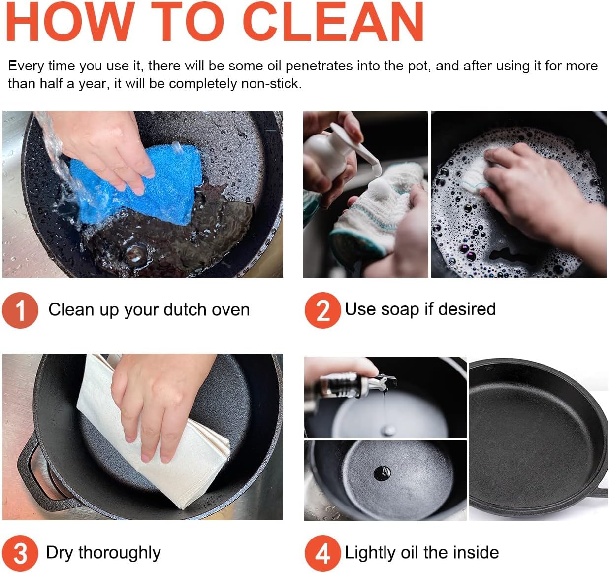 • 【CARING TIPS】- Once you are done cooking make sure to dry completely after cleaning and, while the pot is still warm, lightly oil the inside with your cooking oil of choice. A super-thin coat is all you need.