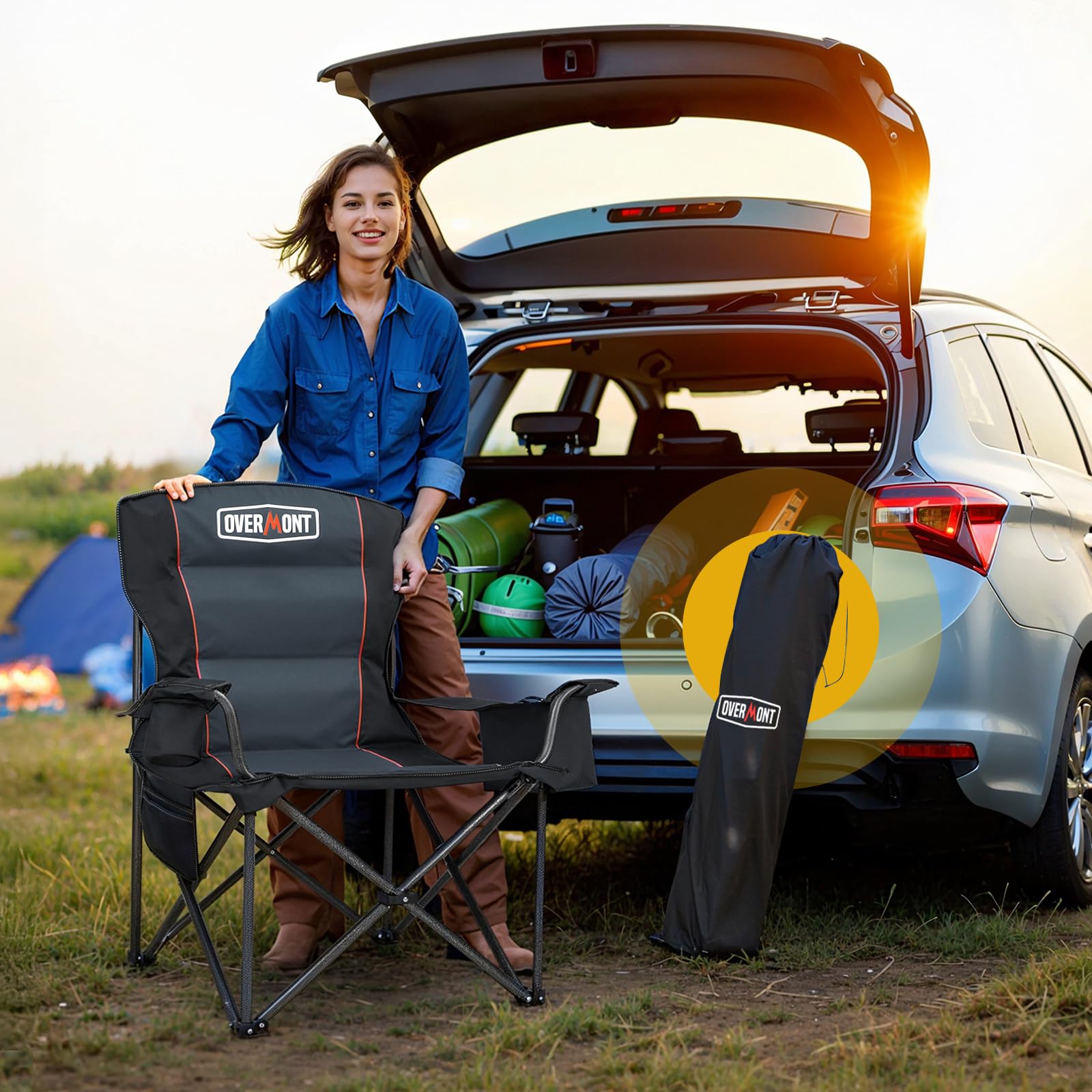 Overmont Oversized Folding Camping Chair - 450lbs Support with Padded Cushion Cooler Pockets - Heavy Duty Collapsible Chairs for Sports Garden Beach Fishing Black