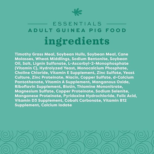 Details: Oxbow Essentials Adult Guinea Pig Food is a premium, veterinarian-recommended diet formulated to meet the specific nutritional needs of adult guinea pigs, featuring high-fiber timothy grass meal as the primary ingredient to support optimal digestive health and prevent obesity. This uniform pellet formula eliminates selective feeding behaviors, ensuring consistent intake of essential nutrients in every bite. Fortified with stabilized vitamin C, prebiotics, and chelated minerals, it promotes immune function, healthy skin, and a vibrant coat. The balanced calcium-to-phosphorus ratio supports bone and urinary health, while the absence of artificial preservatives, colors, or flavors makes it a wholesome choice for daily feeding. Designed for guinea pigs over six months of age, this diet should be fed alongside unlimited access to high-quality grass hay to provide complete and balanced nutrition. Trusted by pet parents and veterinarians alike, Oxbow Essentials Adult Guinea Pig Food supports a healthy, active lifestyle for your adult guinea pig.