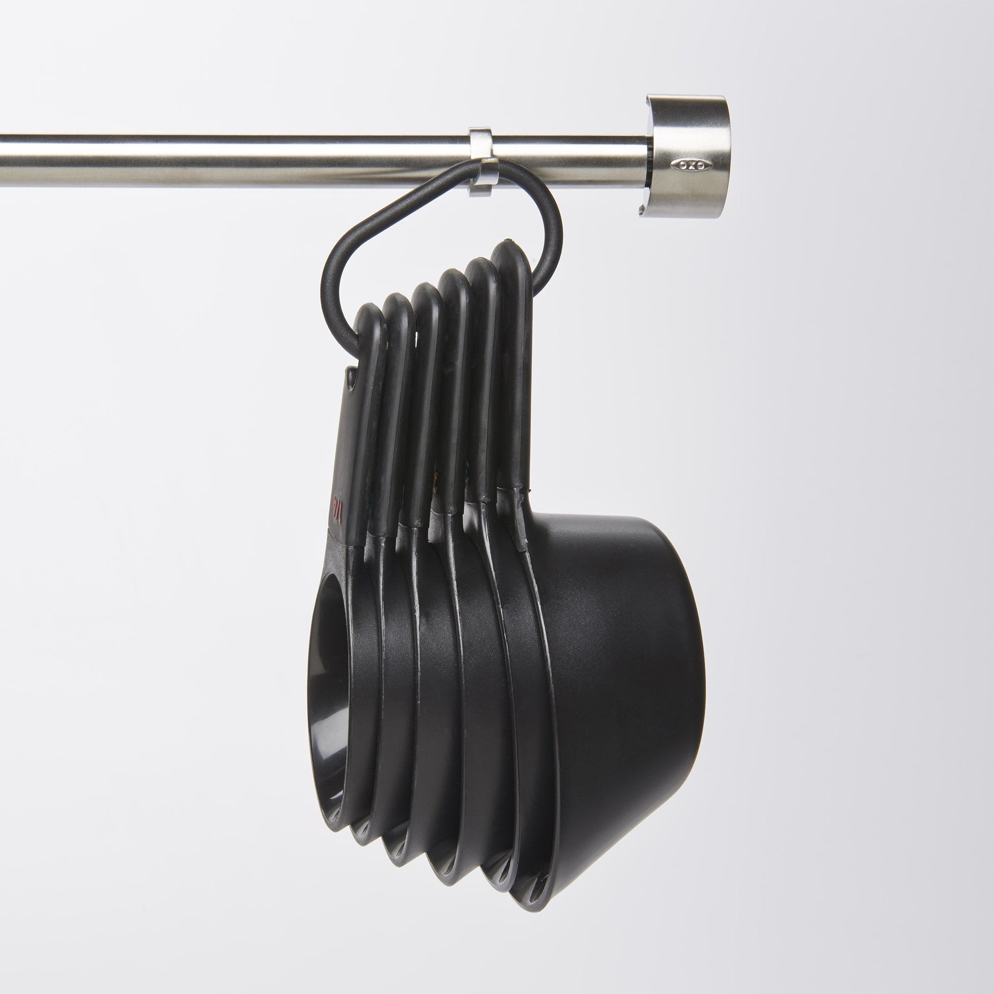 Details: The OXO Good Grips 6-Piece Measuring Cups Set snaps together so you can store the Cups easily and then remove only the Cup you need and leave the rest snapped together. The soft, non-slip handles have permanent measurement markings, and the Cups also feature color-coded, easy-to-read measurements on the side. Each Cup includes a convenient half-measurement line inside for versatile measurements. The Set includes a scraper that can be used to level ingredients; the scraper also has a built-in hook for hanging storage when needed. Set includes: scraper, 1⁄4 cup/59 mL, 1⁄3 cup/79 mL, 1⁄2 cup/118 mL, 2⁄3 cup/158 mL and 1 Cup/237 mL. Dishwasher safe.