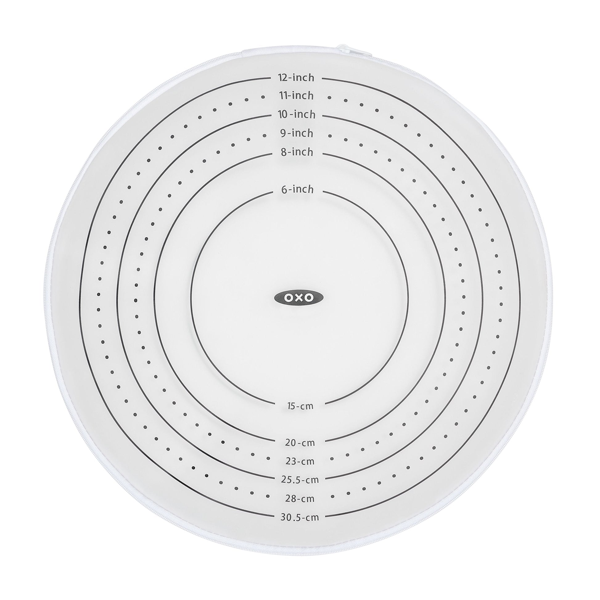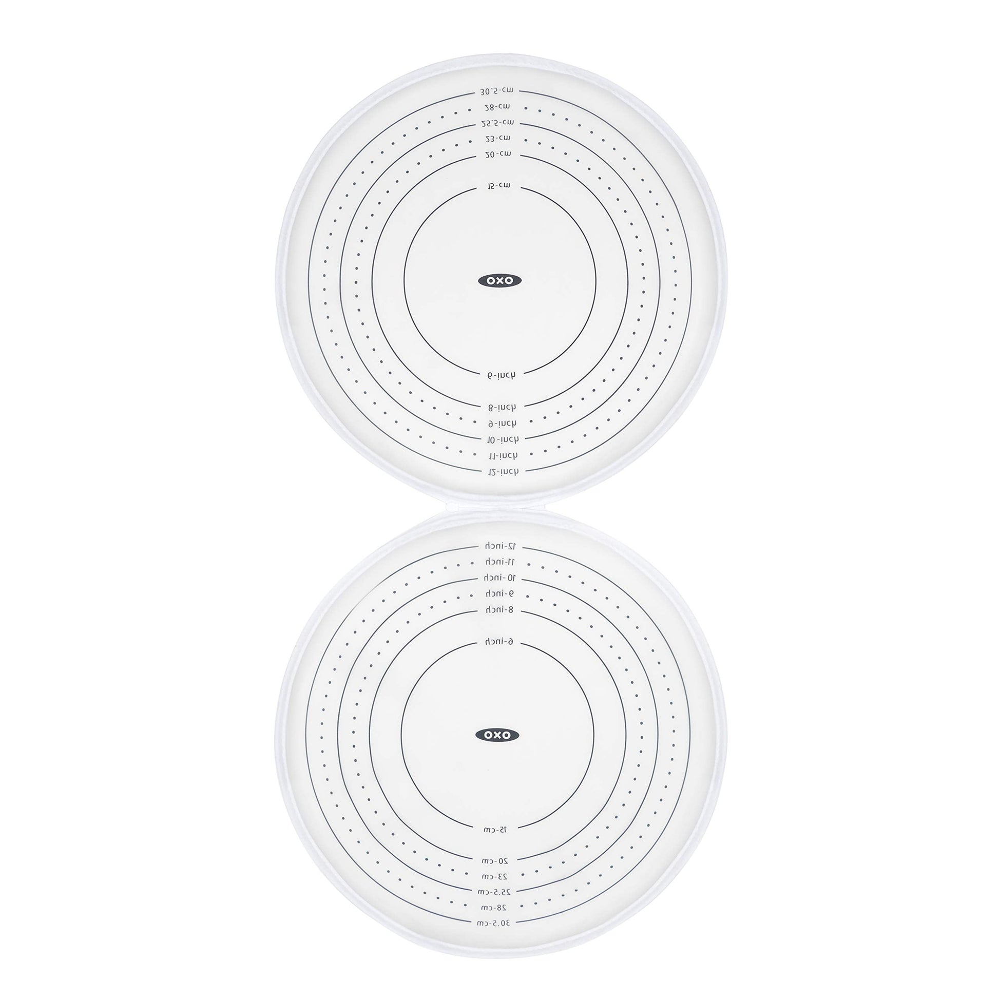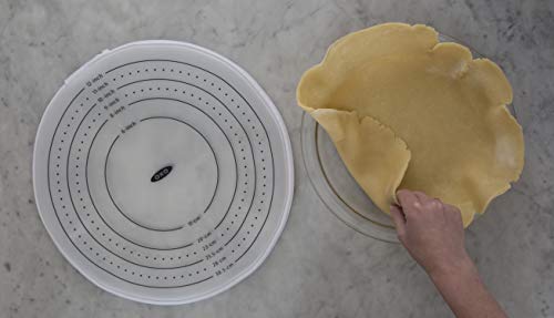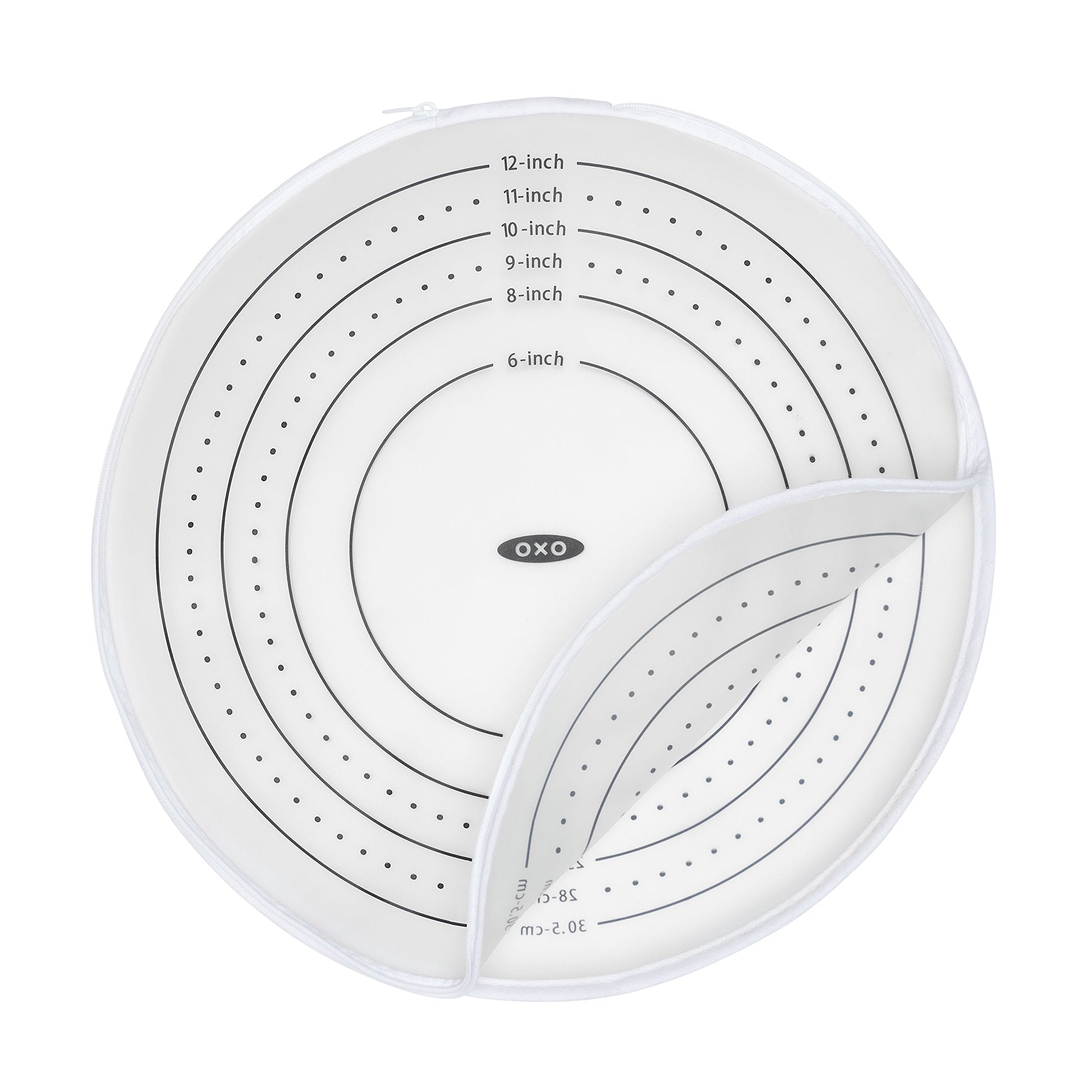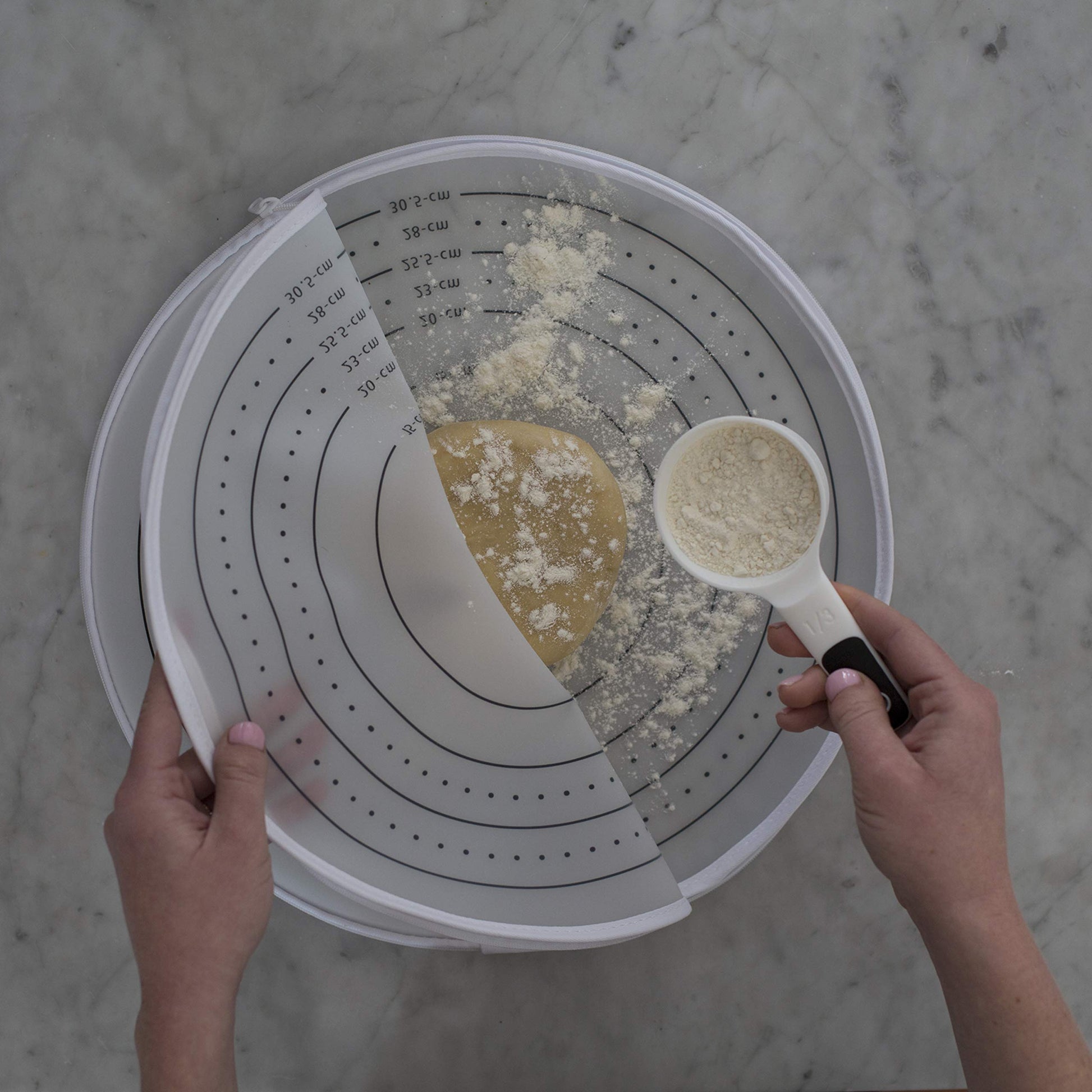 Details: Roll perfectly round crusts for pies, pizzas and more zippered, enclosed bag design keeps rolling pins and countertops clean food-safe silicone is non-stick for effortless dough release measurement markings are easy to read and ensure consistent crusts 14-inch diameter ideal for 9-Inch pie plates