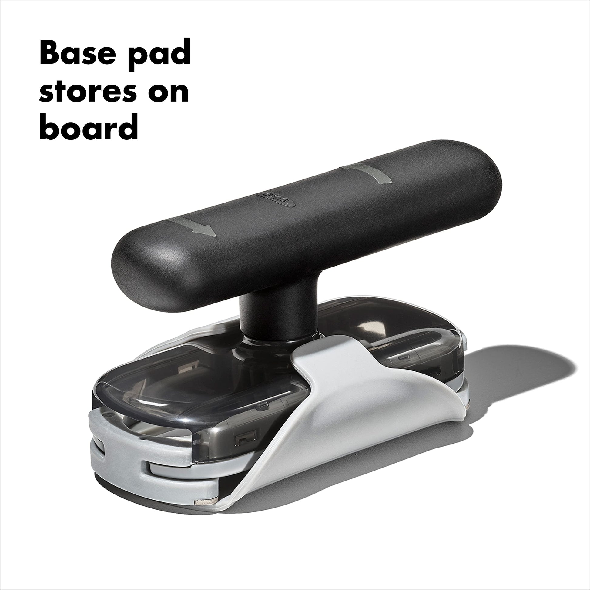 Details: Whether you have arthritis or just need a helping hand in the kitchen, the OXO Good Grips Twisting Jar Opener with Base Pad is the perfect partner. From small bottles that are hard to get a good grip on to jars lids that require a lot of strength, the Twisting Jar Opener makes quick work of any lid with minimal effort needed. To use, just place the base pad on a flat surface in front of you and put the bottle or jar on top; the non-slip surface will help keep the jar from sliding. Ensure the Jar Opener is open, then position it on top of the jar in the middle of the lid. Holding the jar steady in one hand, use the other hand to turn the Jar Opener counterclockwise until the sharp teeth grip the lid. Continue turning the handle until the lid is open. When you’re finished, the base pad secures to the Jar Opener for convenient storage.