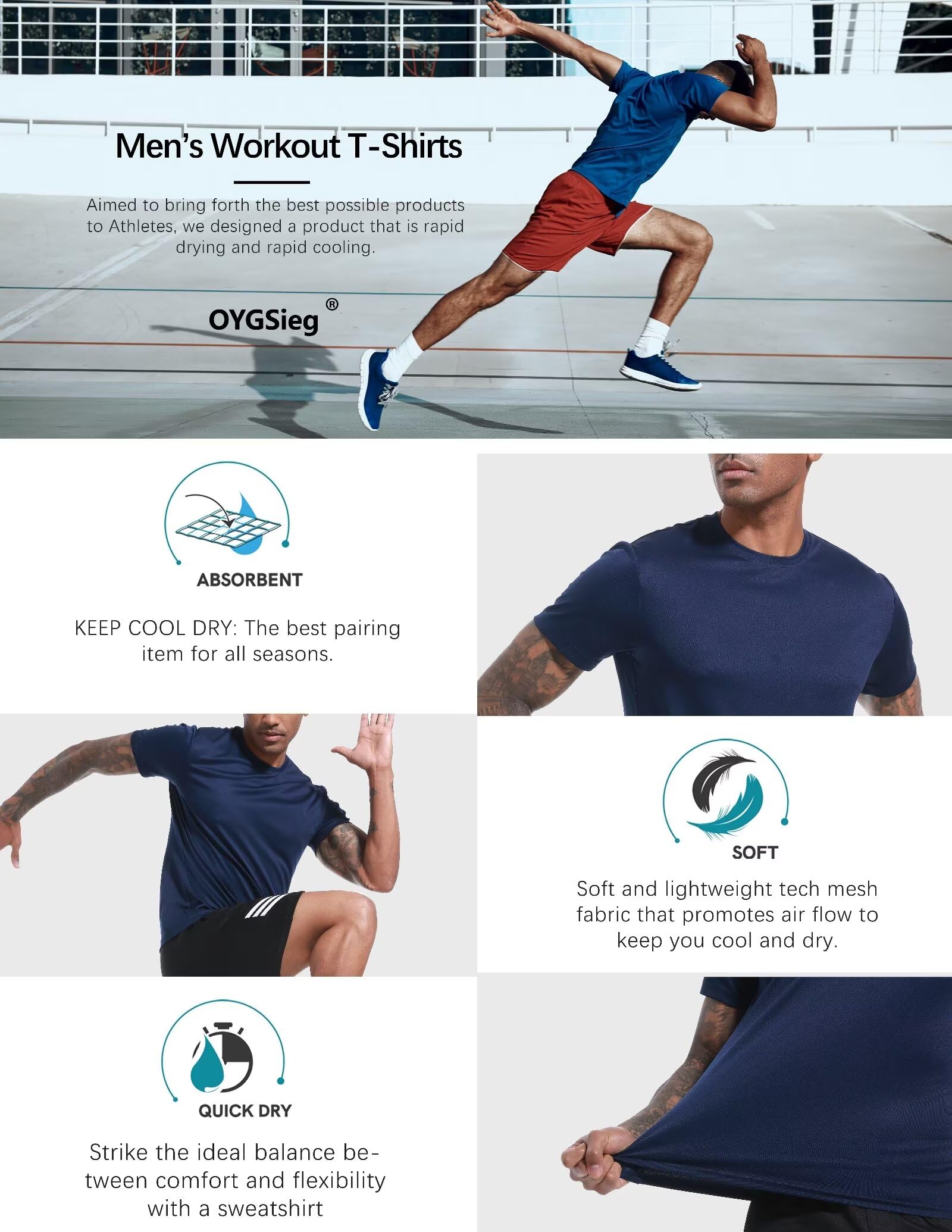 OYGSieg 6 Pack Workout Shirts for Men Short Sleeve Athletic Active Tops Quick Dry Crew Neck T Shirt for Running XL