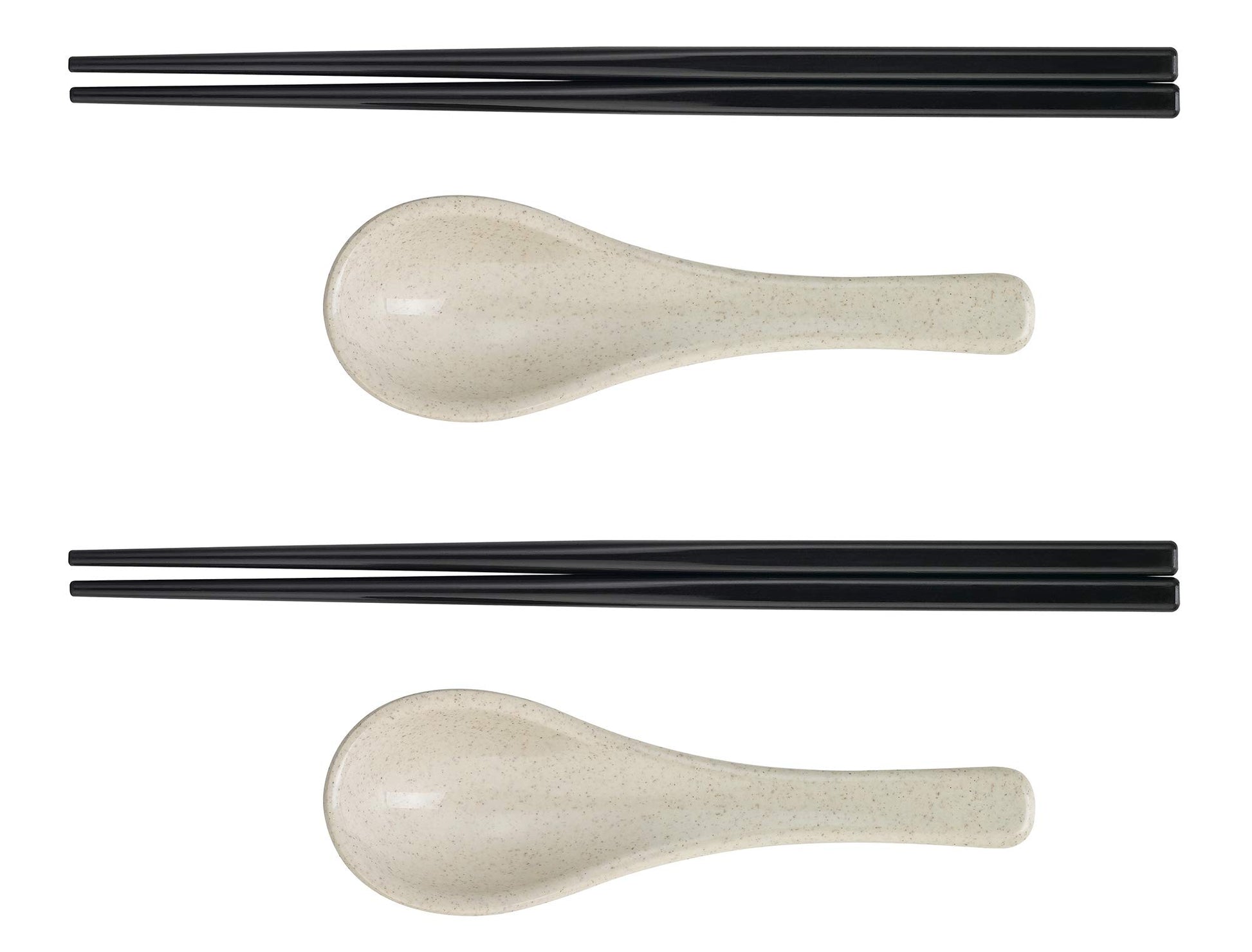 Set contains two 33.5oz (993ml) Ramen bowls, two 5.5" (14cm) spoons and 2 sets of 8.6" (22cm) chopsticks.