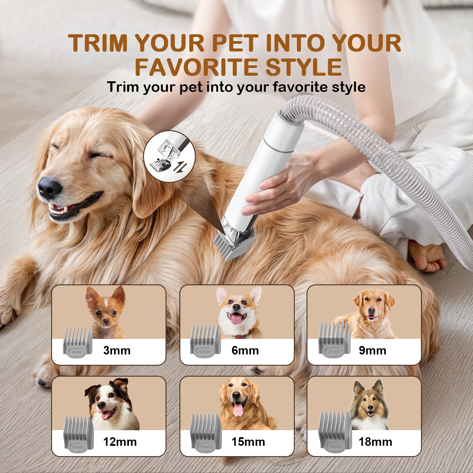 • 🐈7-in-1 Pro Pet Grooming Kit: Complete with perfect accessories for comprehensive pet grooming.Suction and grooming all in one, pet grooming clippers and suction function work simultaneously to remove pet hair and fine dust, keeping everything neat. The Dog paw trimmer and Nail grinder provide excellent cutting, while the Nozzle head offers deep cleaning by effectively sucking out loose hair and dandruff from sofa crevices and carpets.