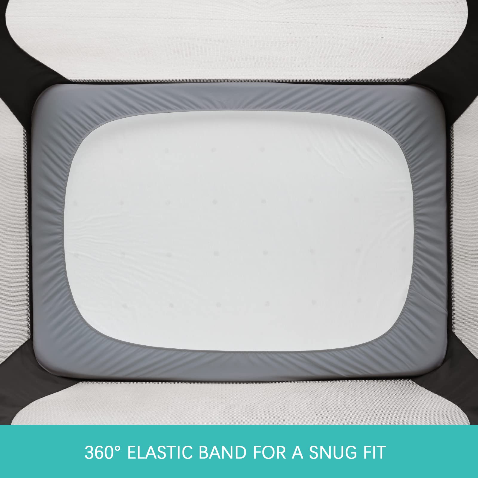 • Perfectly Fit: 39" x 27" Playard mattress cover up to 5'' deep fitted stretch skirt made of elasticized fabric that will securely compatible with most pack and play mattress, playard mattress or mini crib mattress.