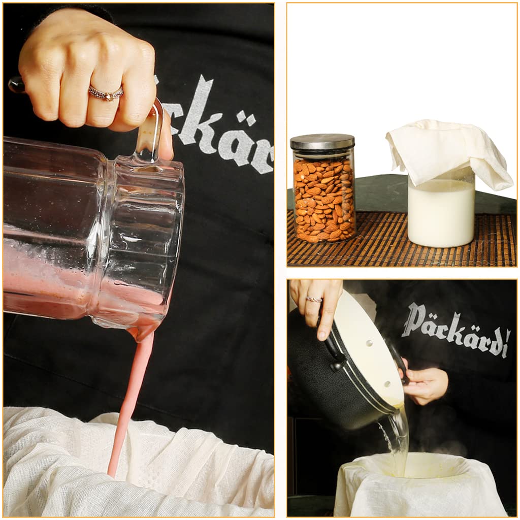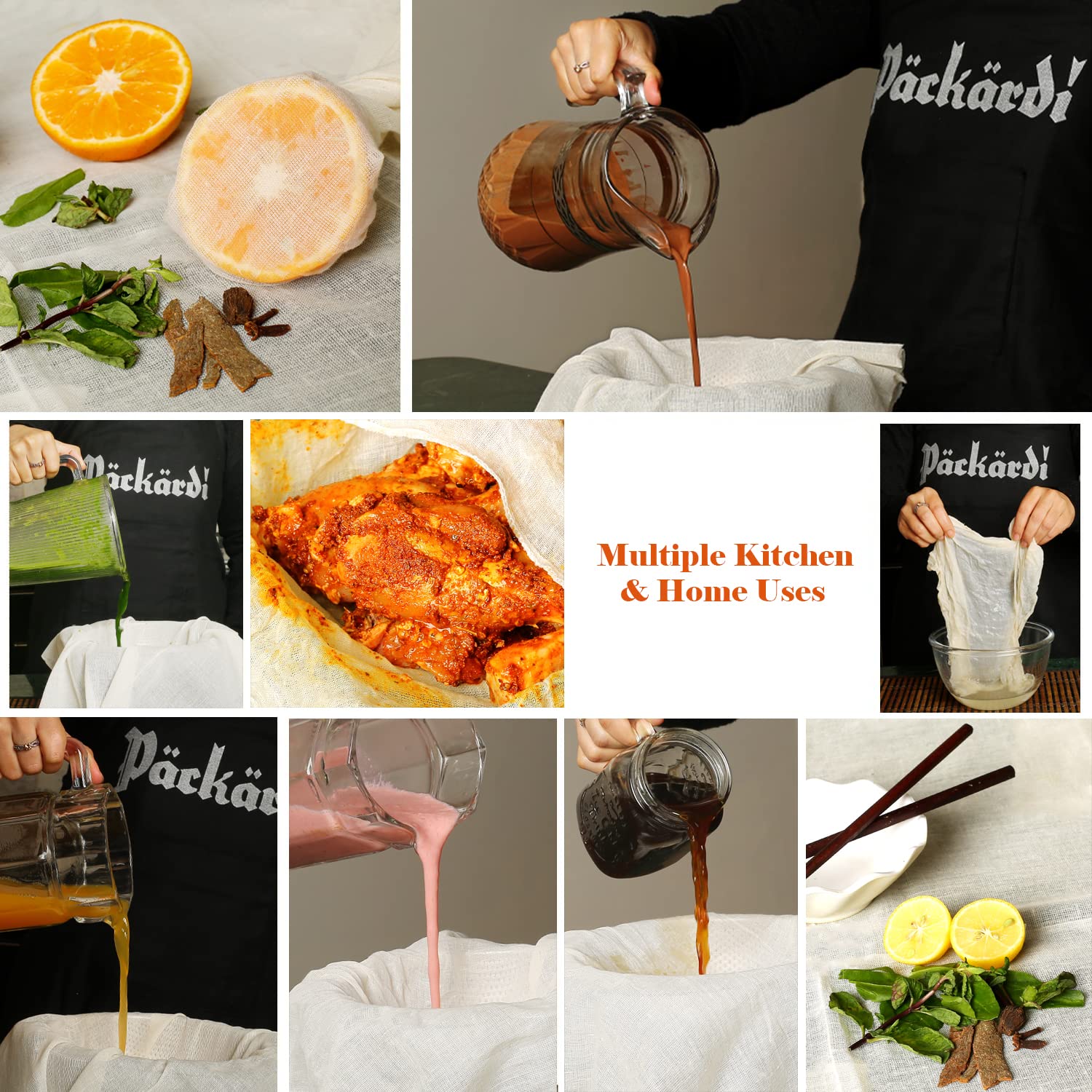• REUSABLE AND EASY TO USE: The high-quality cotton material of cheesecloth is reusable, so you don't have to worry about waste. Simply boil it in water for 15 minutes to remove any trapped particles and it's ready to use again