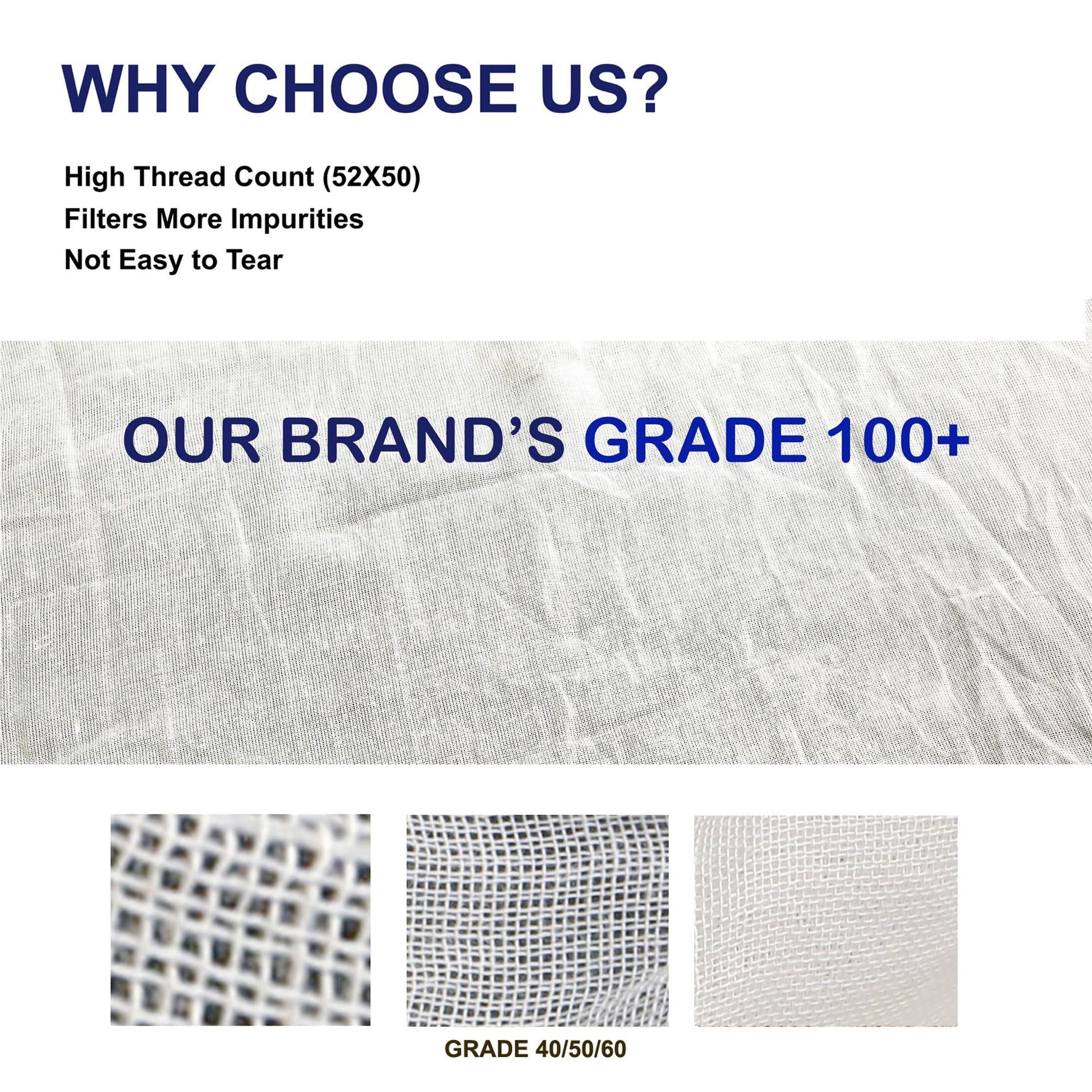 • DURABLE AND STURDY: Our muslin cloths are made from the finest-grade yarn with 52 x 50 threads per inch, making them ultra-fine. The tight mesh ensures the cloth retains its shape and strength, making it an excellent choice for straining