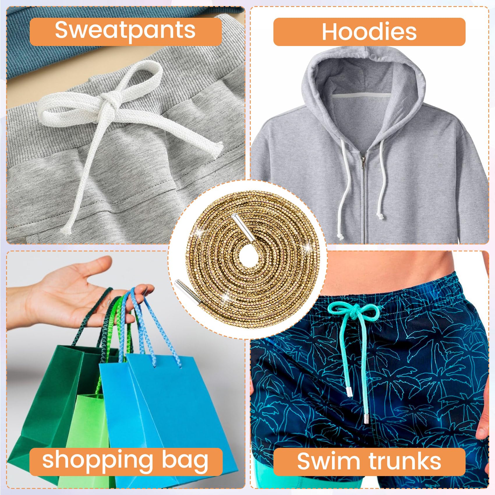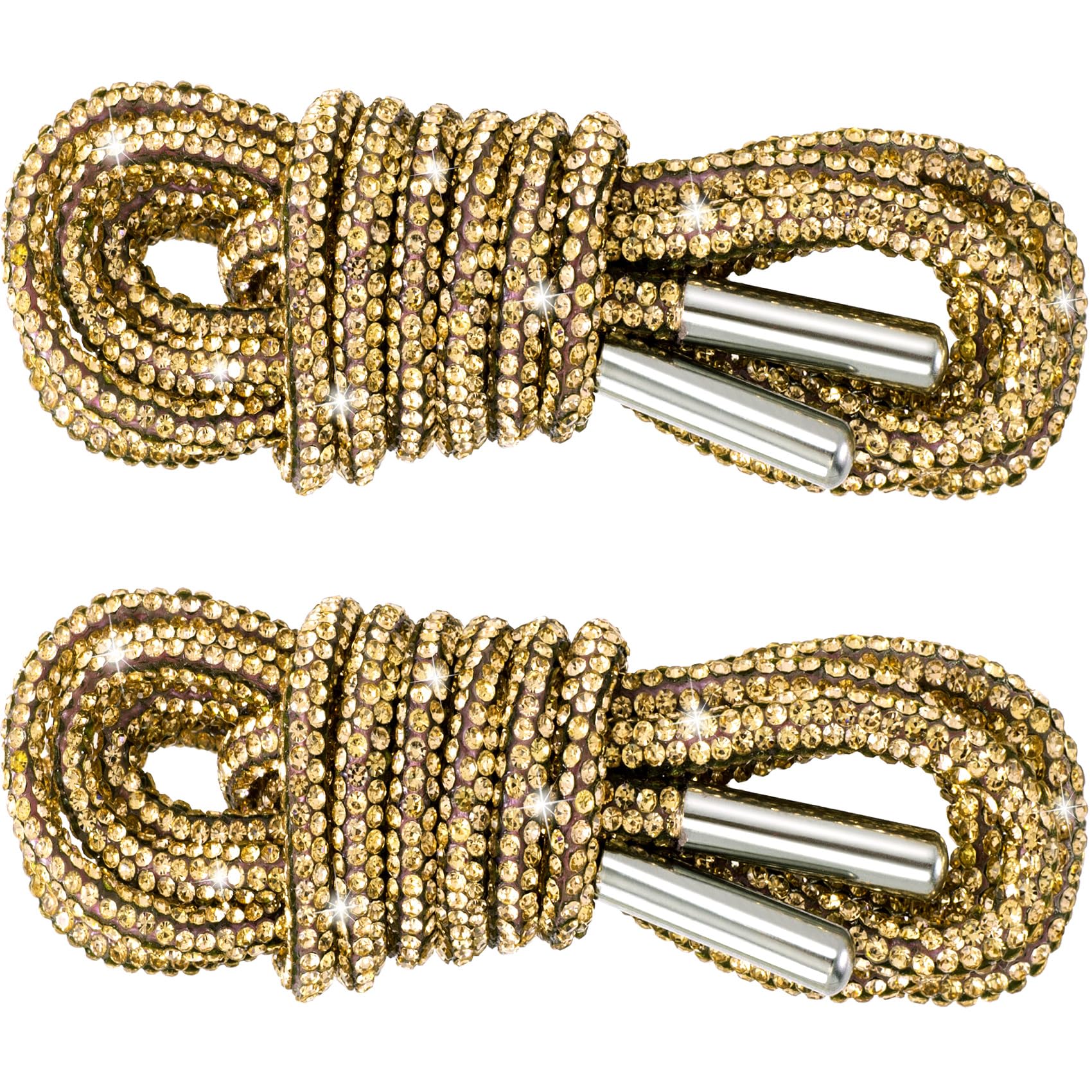 PAGOW 1 Pair Rhinestone Glitter Rope, Crystal Bling Bling Shiny Round Shoe Laces for Sneakers, Drawstring Cords Replacement for Sweatpants Shorts Crystal Hoodies (Gold, 120cm)