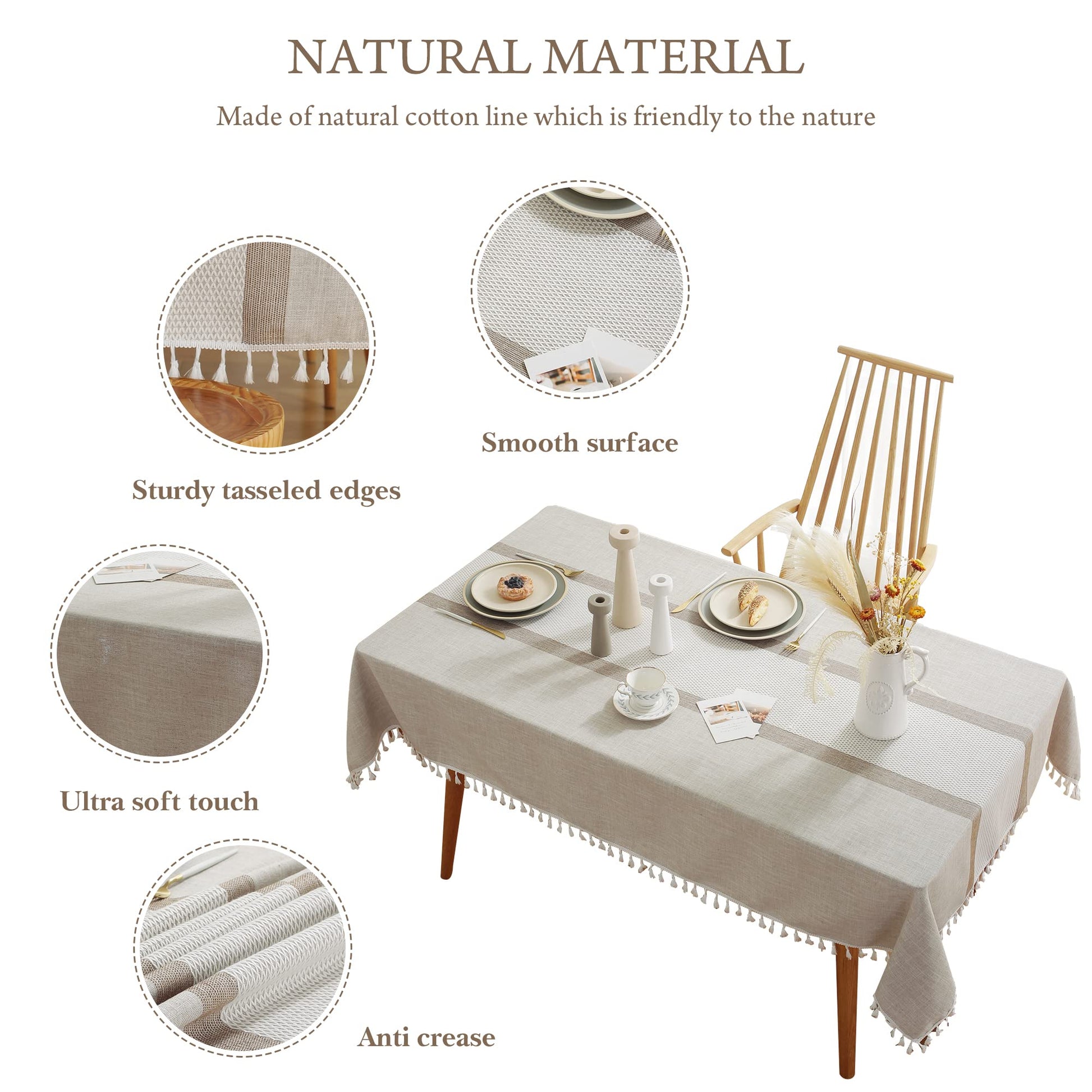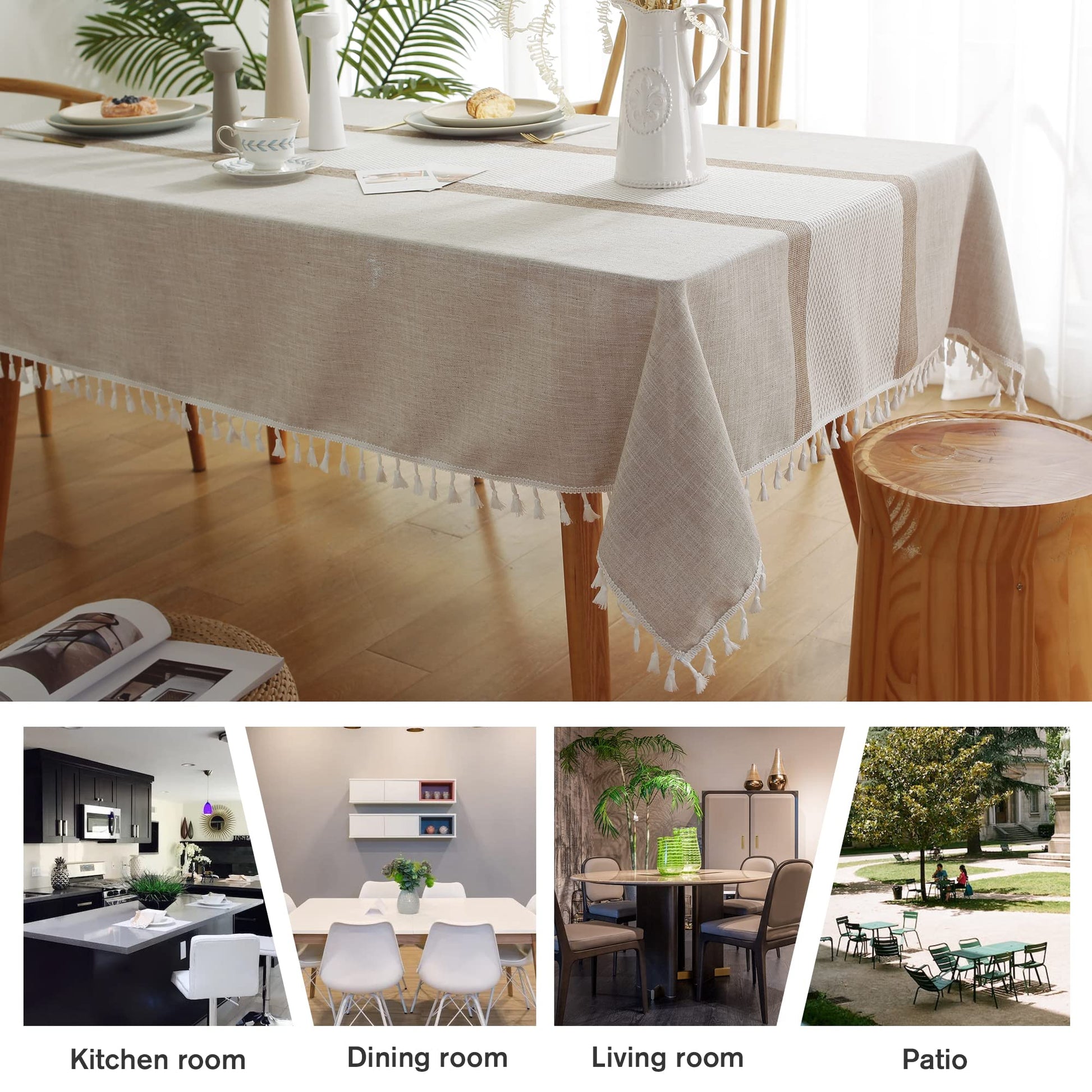 • 【FOR MORE OCCASIONS】 - Linen tablecloth Instantly brighten dining tables while protecting surfaces. This versatile tablecloth is reminiscent of casual dining and perfect for everyday meals with the family, parties, birthdays or special holiday gatherings. Indoor/outdoor use,patio, gardens, kitchen room, dining room, family room and decoration