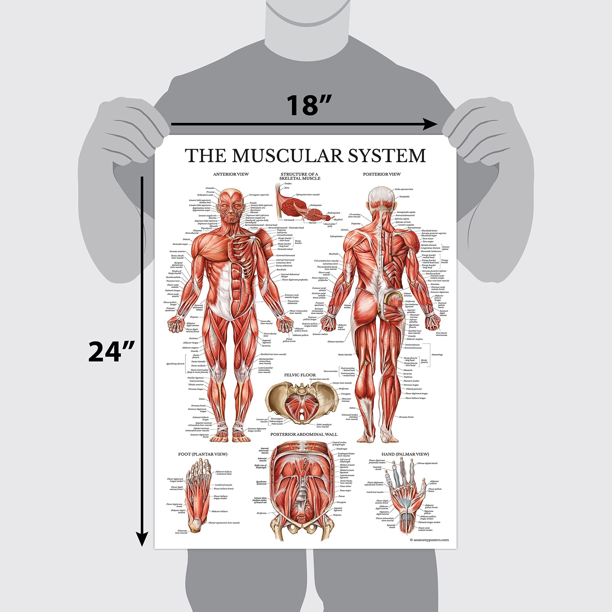 Palace Learning Muscular & Skeletal System Anatomical Poster Set - LAMINATED 2 Chart Set - Human Skeleton & Muscle Anatomy - (18" x 24")