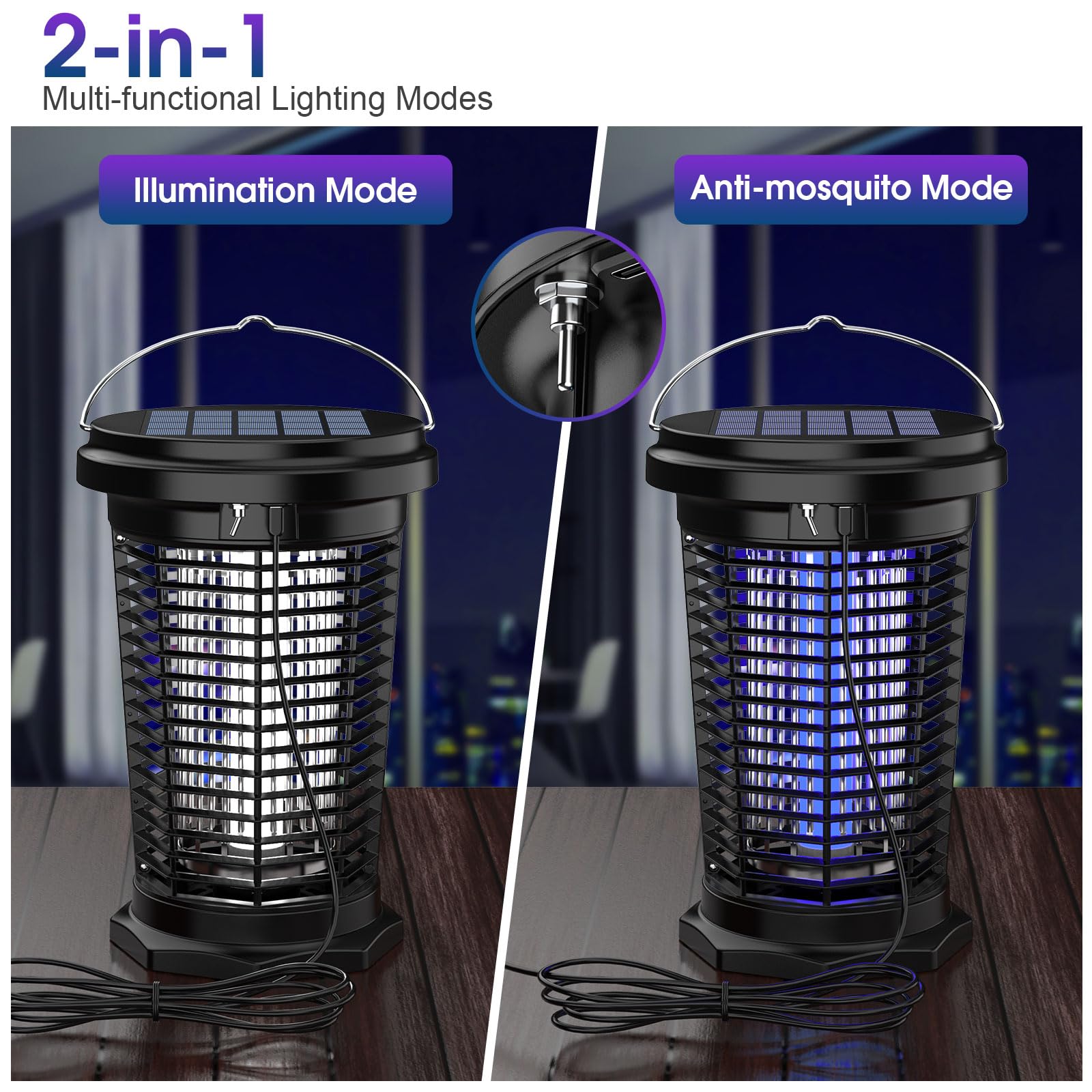 PALONE Bug Zapper for Outdoor & Indoor with 5.5W Solar Panel Charging, Electric Fly Zapper USB Charging Solar Bug Zapper Light for Camping Outdoor, Backyard, Garden