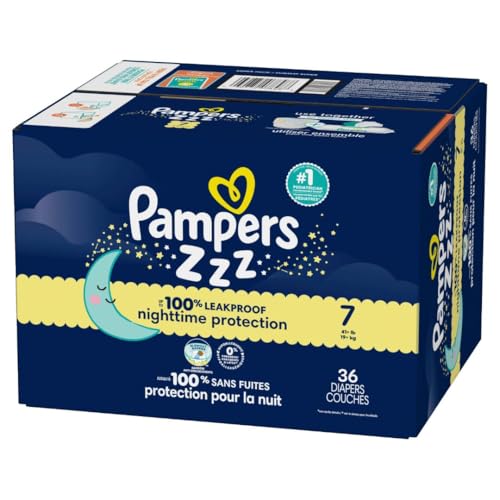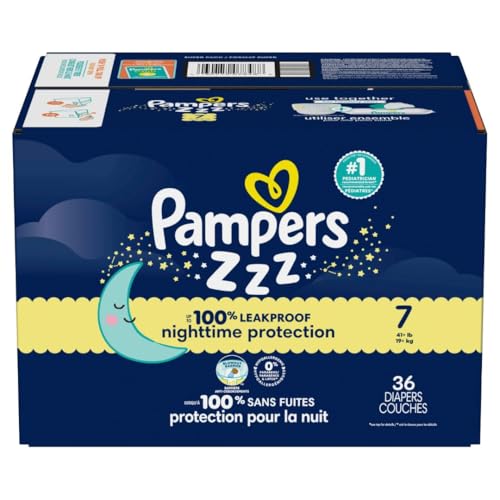 Pampers ZZZ Overnight Diapers, Size 7 (41+ lbs), 36 Count, Nighttime Protection Disposable Baby Diaper, Night Time Leak and Skin Protection