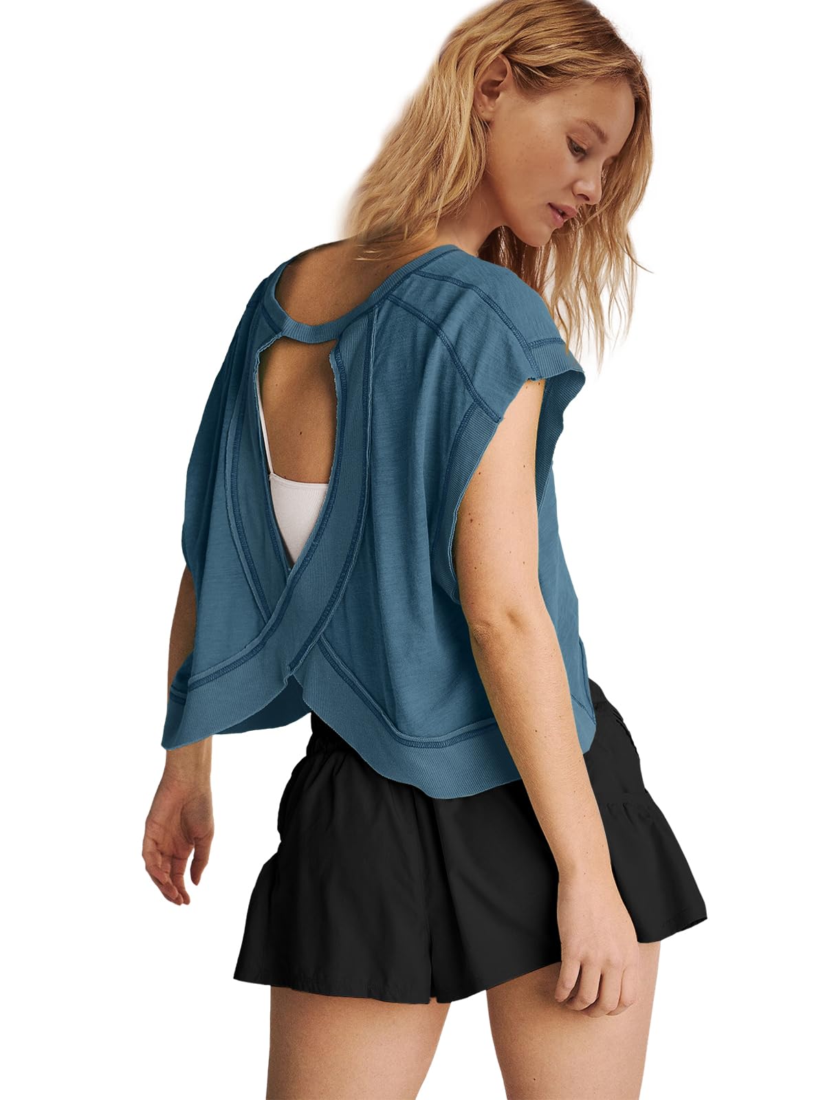 • Occasion: Embrace comfort and style effortlessly. This short sleeve open back tops is perfect for going to or from a workout, this tee features a soft fabrication, slouchy crop and flattering back opening. Its adaptability blends seamlessly with your lifestyle.