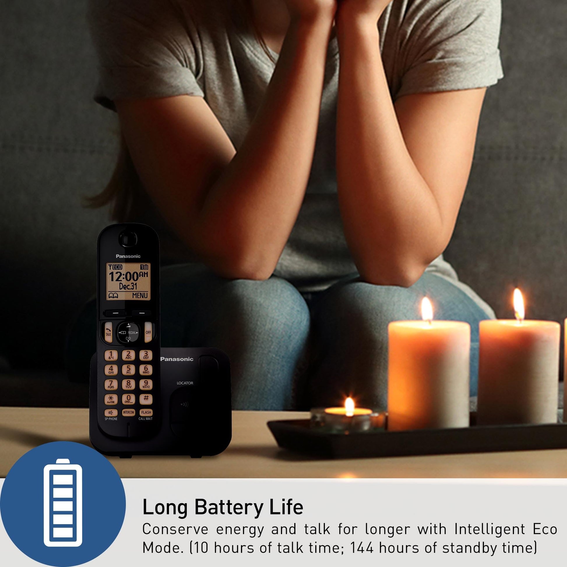Details: Panasonic KX-TGC200 cordless phone is a reliable landline phone with features that make everyday life so much easier. The large 1.6" amber backlit handset display offers exceptional readability, even in low light, making nighttime calling effortless. Its clear, illuminated screen lets you seamlessly navigate menus, dial numbers, and view caller ID with ease. Additionally, the Call Block feature allows you to permanently block up to 30 unwanted numbers, giving you greater control over your calls and enhancing your peace of mind. Enjoy extended usage with up to 10 hours of talk time and 144 hours of standby time. The Intelligent Eco Mode optimizes power consumption, ensuring longer battery life while reducing energy usage, making it both practical and eco-friendly. The handset speakerphone adds another layer of convenience, enabling hands-free communication. Whether you're working, cooking, or simply relaxing, you can engage in clear and reliable conversations without needing to hold the handset, ensuring comfort and multitasking efficiency. Base unit and one cordless handset included.