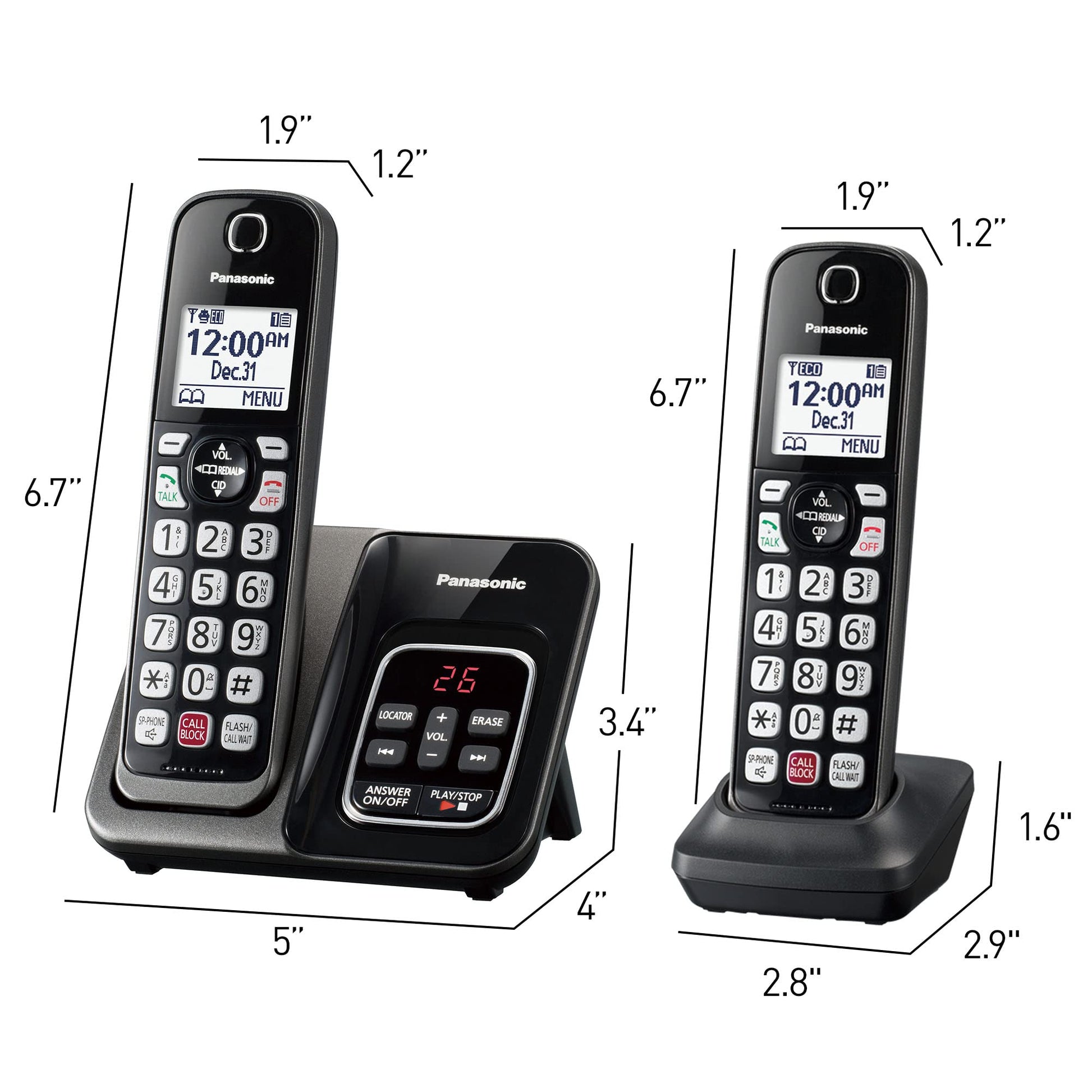 Details: Panasonic cordless home phone expandable up to 6 handsets, with Smart Call Block features to make it easier than ever to block and avoid nuisance callers; a fully featured digital answering system plus talking Caller ID ensures you never miss a call, and stores up to 17 minutes of messages; Quick-Read Message Counter lets you easily check for messages and listen to them from base unit or handset.