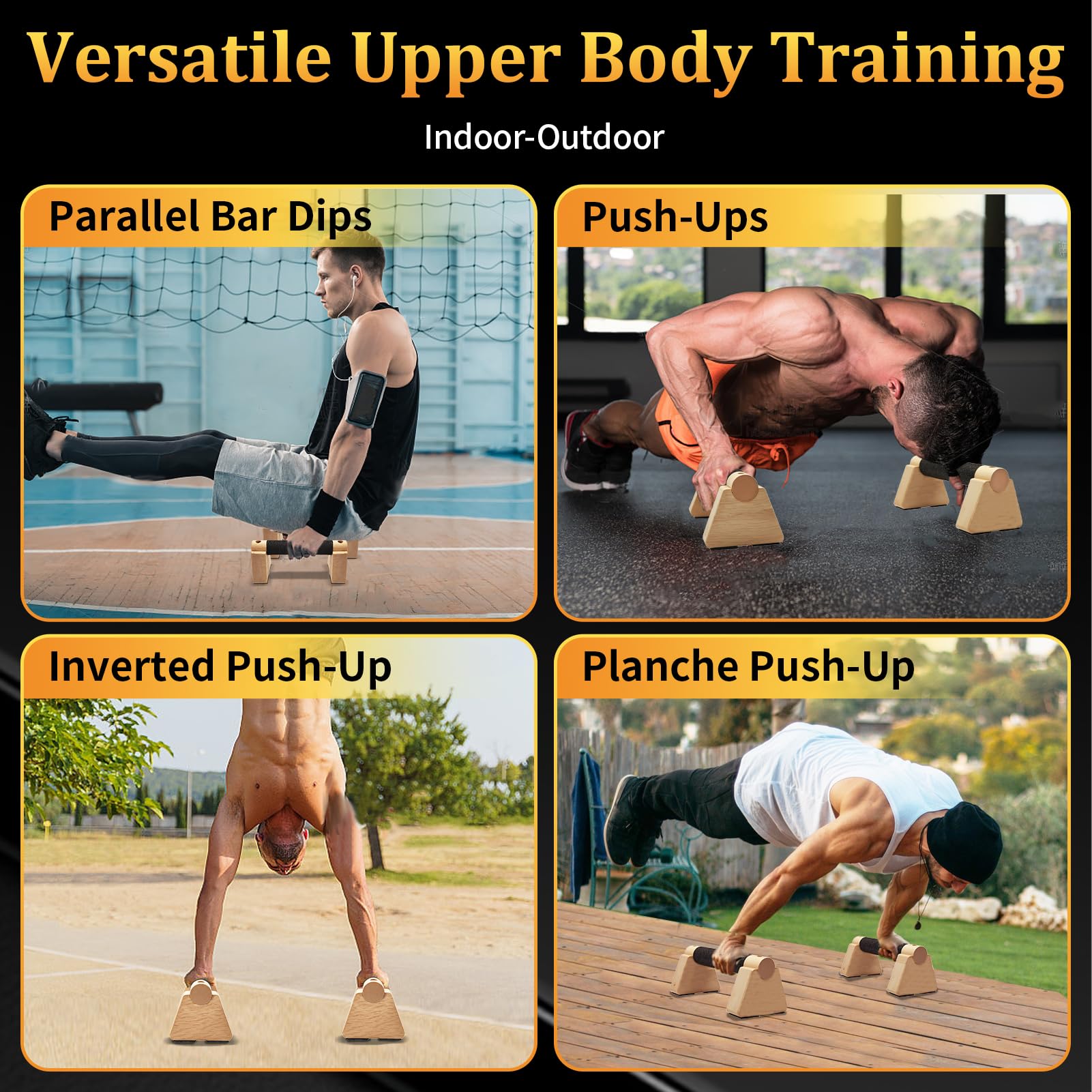 • 【Premium Wooden Parallettes】Durable wooden construction provides natural grip comfort, making these handstand blocks ideal for prolonged training sessions while maintaining stability