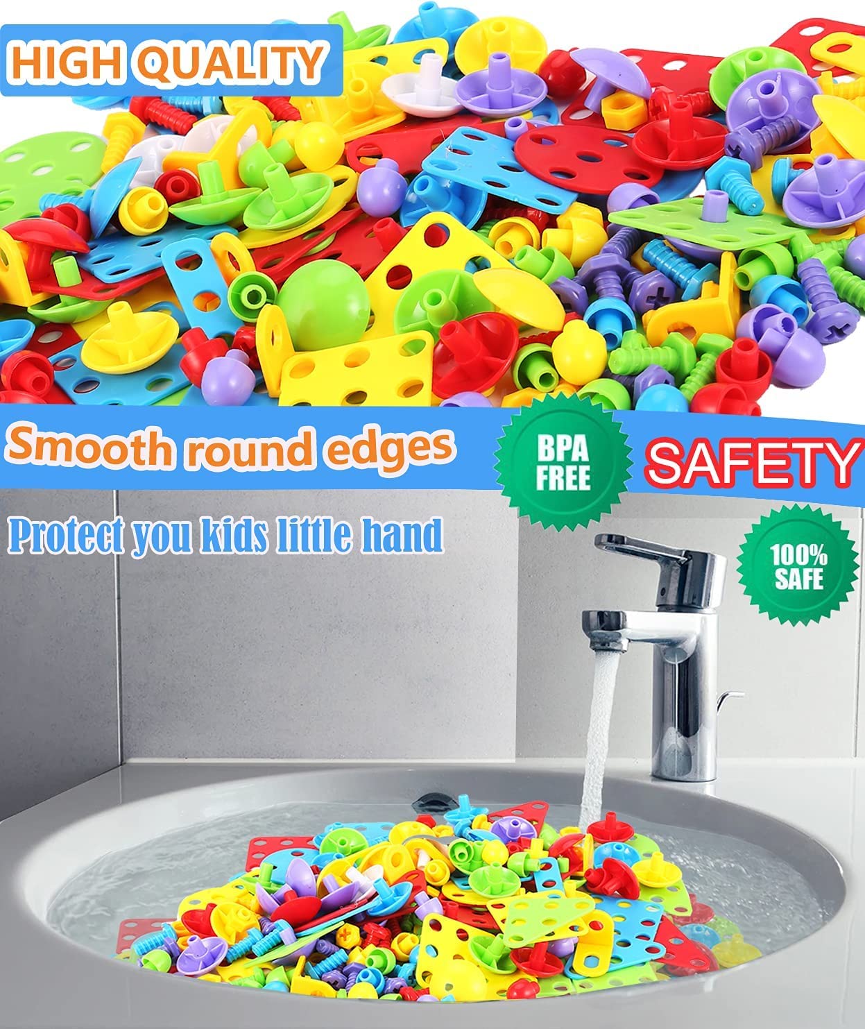 • Safe and Premium Quality: Made of non-toxic and premium Quality ABS plastic, food-grade material; smooth edge of each tile will never hurt baby's little hands, harmless to human and environment, meets toy safety standards.