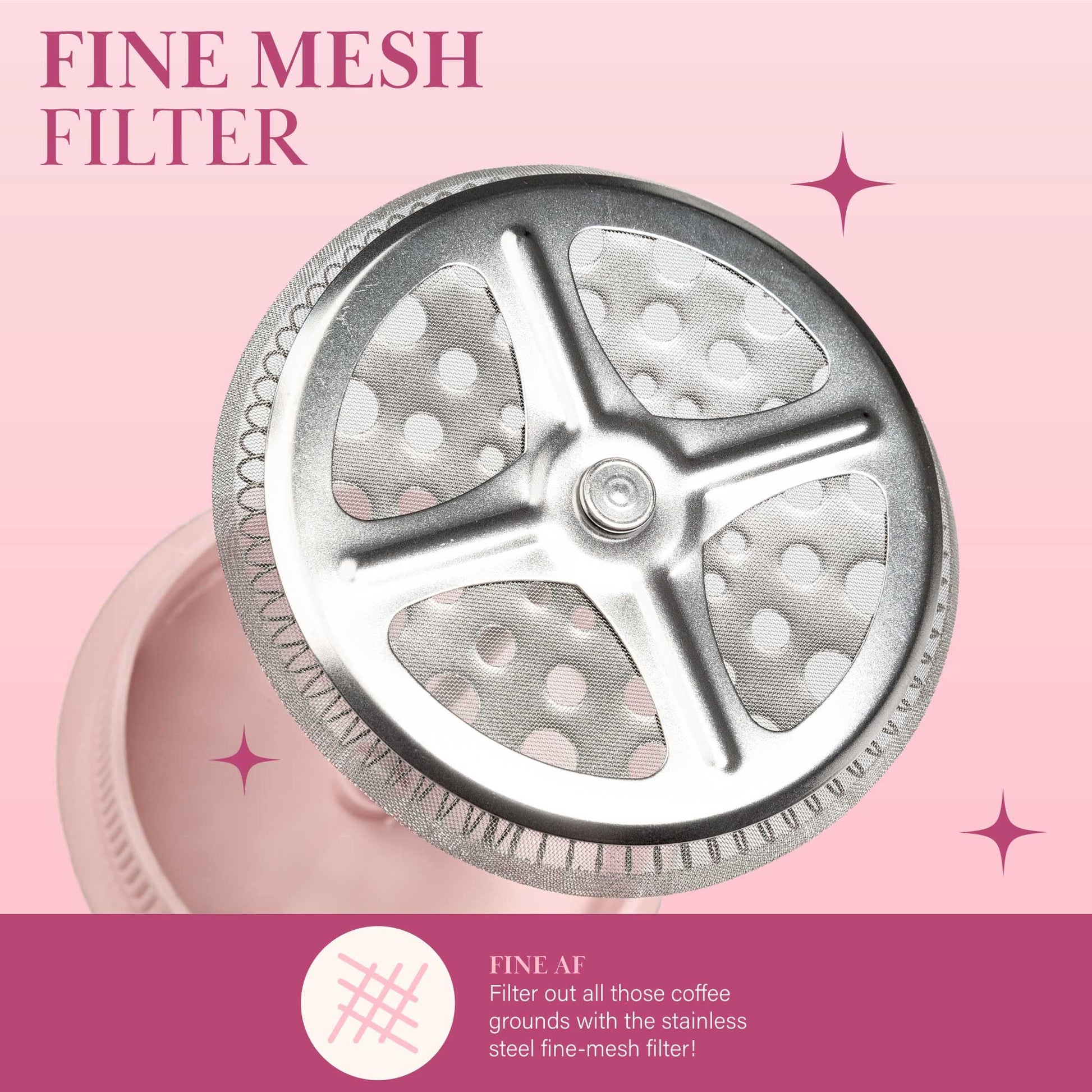 • SLIV YOUR MORNINGS: The Paris Hilton coffee press set will make your morning brew iconic. A golden heart shaped measuring spoon and fine mesh stainless steel coffee filter keeps ground coffee from spoiling your first morning sip. Makes up to 8 demitasse cups of freshly pressed coffee with style.