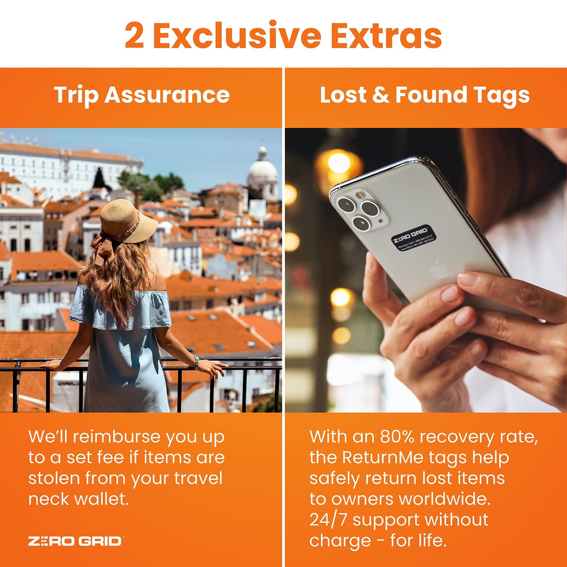 • Added Security for Peace of Mind - Designed for convenience and safety, this travel wallet includes two recovery tags from ReturnMe, a global lost & found service. Attach them to your phone, passport, or laptop, and if lost, the service helps facilitate their return.