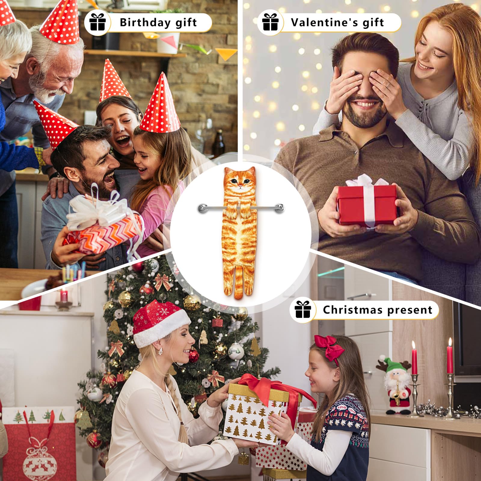 • 【Original Gift Ideas-Cat Gifts for Cat Lovers】The cat bathroom decor hand towels is a perfect gift for all occasions,cat lover gifts for women/friend,housewarming gift,house warming gifts new home,birthday gifts for women,Mother's Day, Christmas, Valentine'S Day,etc. All people, especially cat lovers, will be surprised and happy when they receive this unique novelty cat gifts hanging towel!