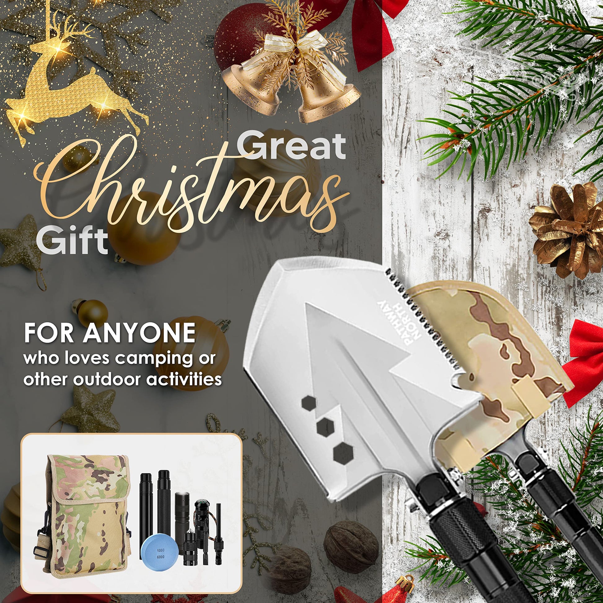 Pathway North Survival Shovel Stainless Steel Folding Multi-Tool Survival Flashlight – Equipment for Outdoor With Self Defense Hiking Stick Hunting Emergency Survival Kit For Backpacking, Camping Gear
