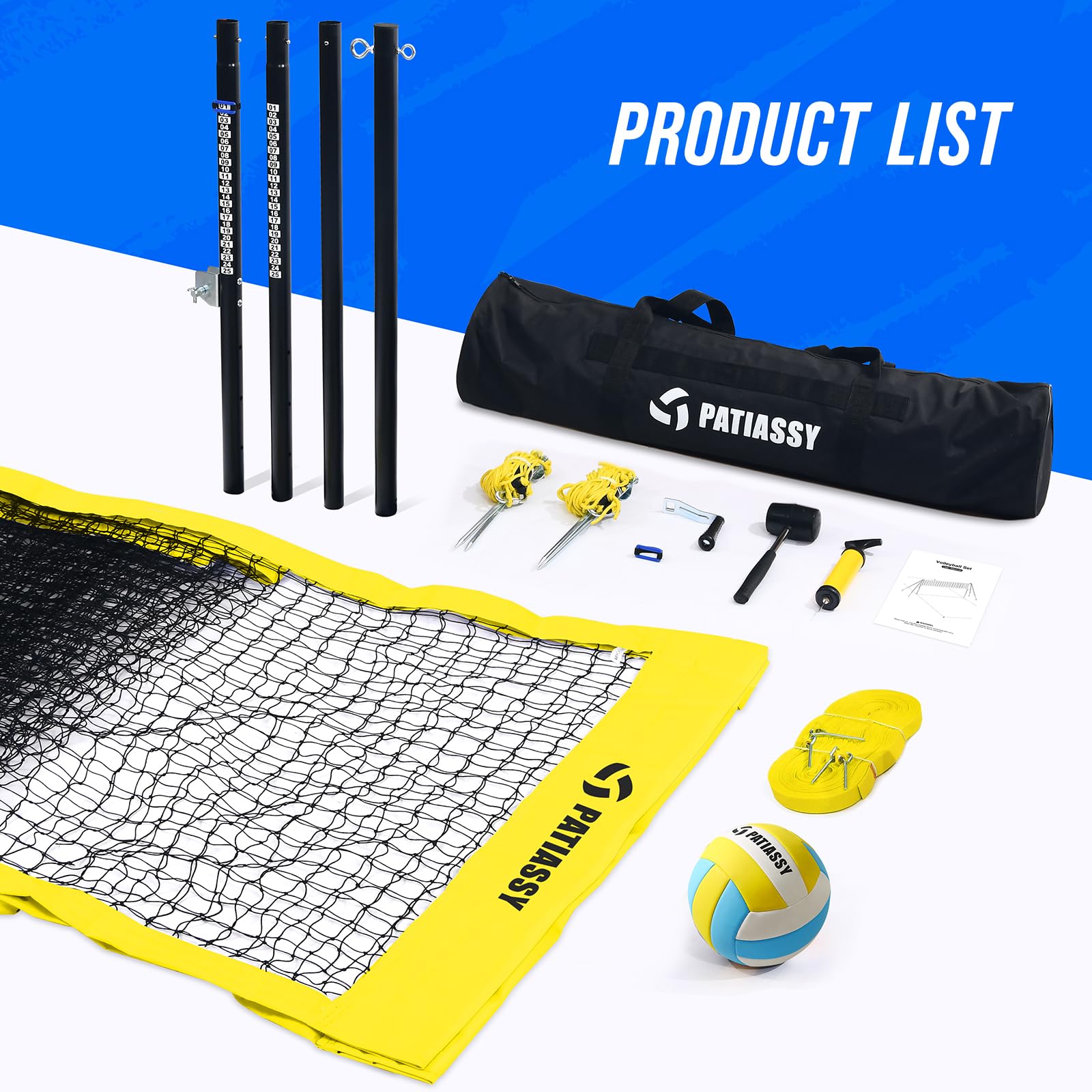 Patiassy Portable Professional Outdoor Volleyball Net Set with Winch System, Adjustable Height Aluminum Poles, Volleyball with Pump and Carrying Bag for Backyard Beach