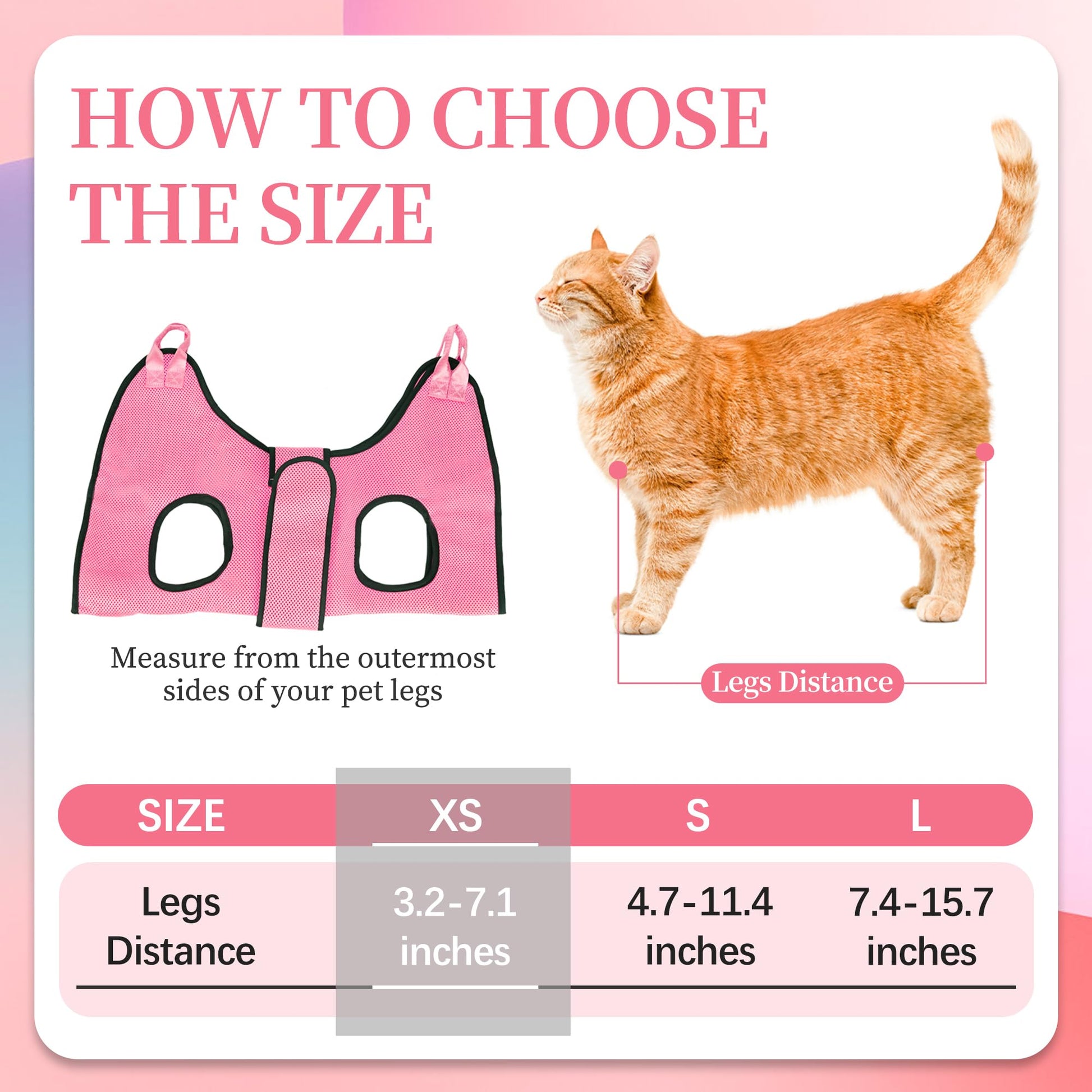 • 【Choose the Right Size】Our pet grooming hammock comes in three sizes: XS and S. 𝐁𝐞𝐟𝐨𝐫𝐞 𝐩𝐮𝐫𝐜𝐡𝐚𝐬𝐢𝐧𝐠, 𝐲𝐨𝐮 𝐡𝐚𝐯𝐞 𝐭𝐨 𝐦𝐞𝐚𝐬𝐮𝐫𝐞 𝐭𝐡𝐞 𝐝𝐢𝐬𝐭𝐚𝐧𝐜𝐞 𝐛𝐞𝐭𝐰𝐞𝐞𝐧 𝐲𝐨𝐮𝐫 𝐩𝐞𝐭'𝐬 𝐟𝐫𝐨𝐧𝐭 𝐚𝐧𝐝 𝐛𝐚𝐜𝐤 𝐥𝐞𝐠𝐬. 𝐓𝐡𝐞𝐧 𝐚𝐜𝐜𝐨𝐫𝐝𝐢𝐧𝐠 𝐭𝐨 𝐭𝐡𝐞 𝐬𝐢𝐳𝐞 𝐜𝐡𝐚𝐫𝐭, 𝐲𝐨𝐮 𝐜𝐚𝐧 𝐜𝐡𝐨𝐨𝐬𝐞 𝐭𝐡𝐞 𝐦𝐨𝐬𝐭 𝐬𝐮𝐢𝐭𝐚𝐛𝐥𝐞 𝐡𝐚𝐦𝐦𝐨𝐜𝐤 𝐟𝐨𝐫 𝐲𝐨𝐮𝐫 𝐩𝐞𝐭.