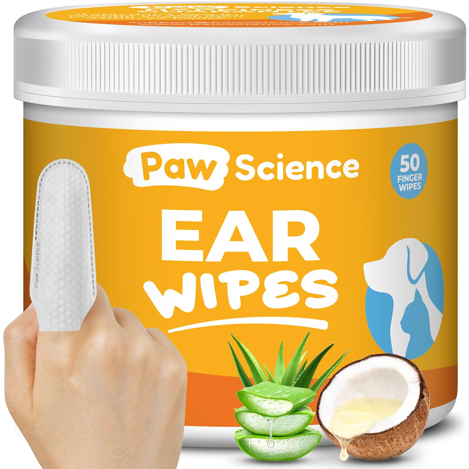 Paw Science Dog Ear Cleaner Wipes – Finger Wipes for Dogs & Cats – Cleaning, Soothing, & Deodorizing Itchy Ears – Pet Ear Relief Solution (Coconut)