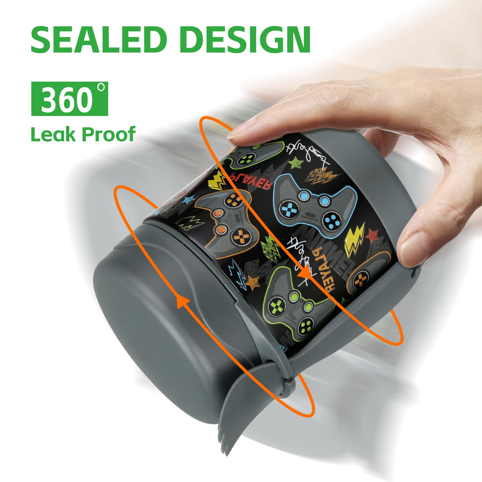 Pawtong 10oz Soup Thermo for Hot Food Kids Insulated Food Jar,Thermo Hot Food Lunch Container, Width Mouth Stainless Steel Lunch Box for Kids with Spoon (Black-Gamepad)