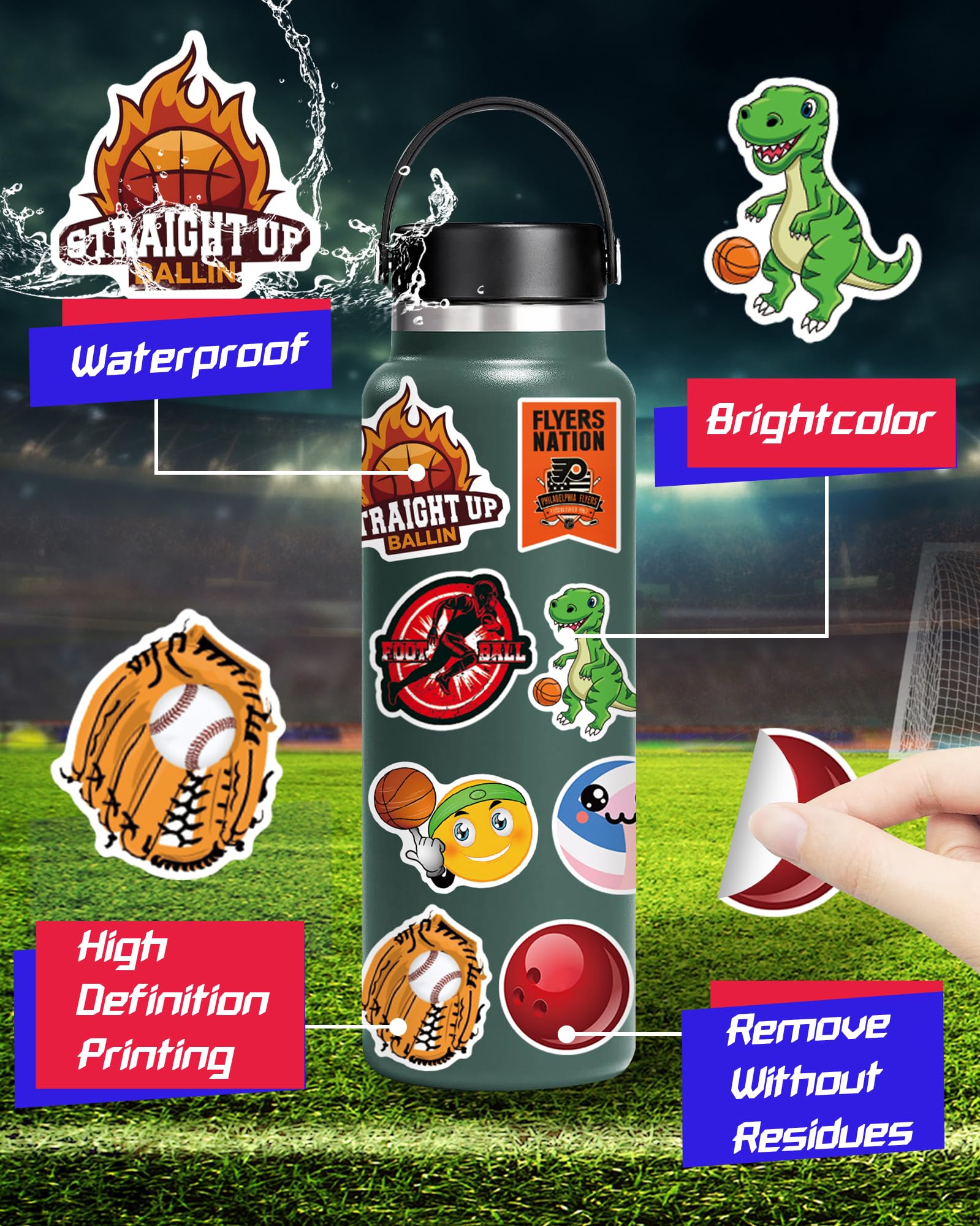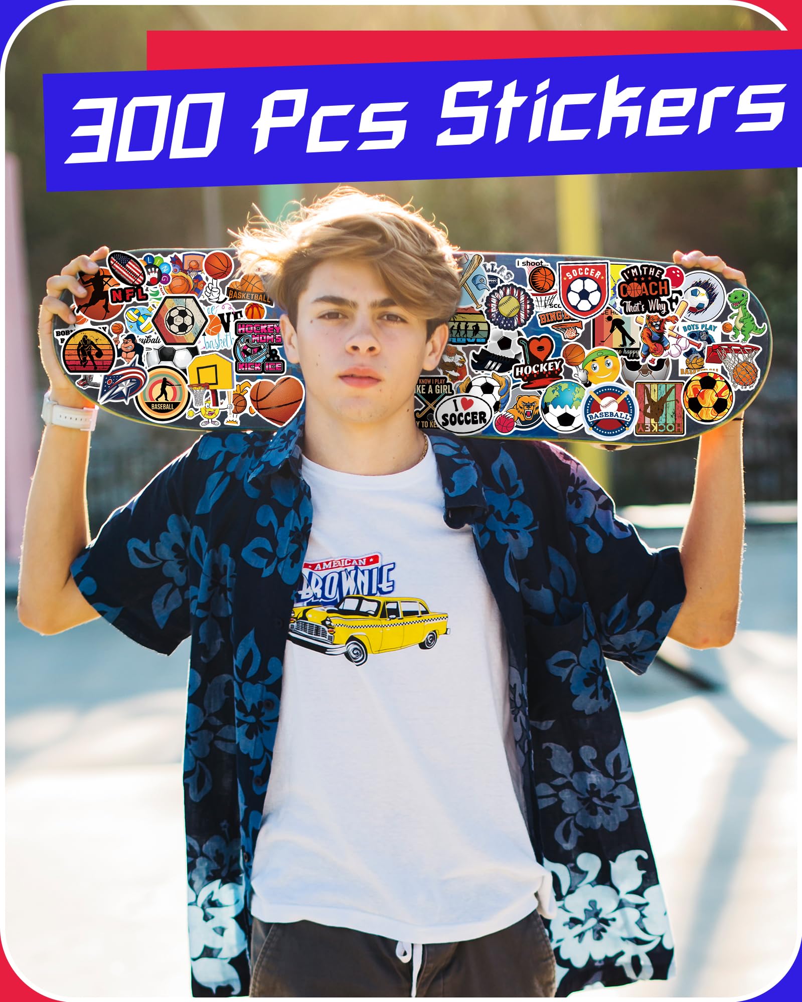 pcnearty 300 Pcs Sport Stickers for Kids, Sport Water Bottle Stickers, Vinyl Waterproof Laptop Sticker for Water Bottle, Bulk Sticker Packs for Boys Kids Classroom Prizes for Elementary Students