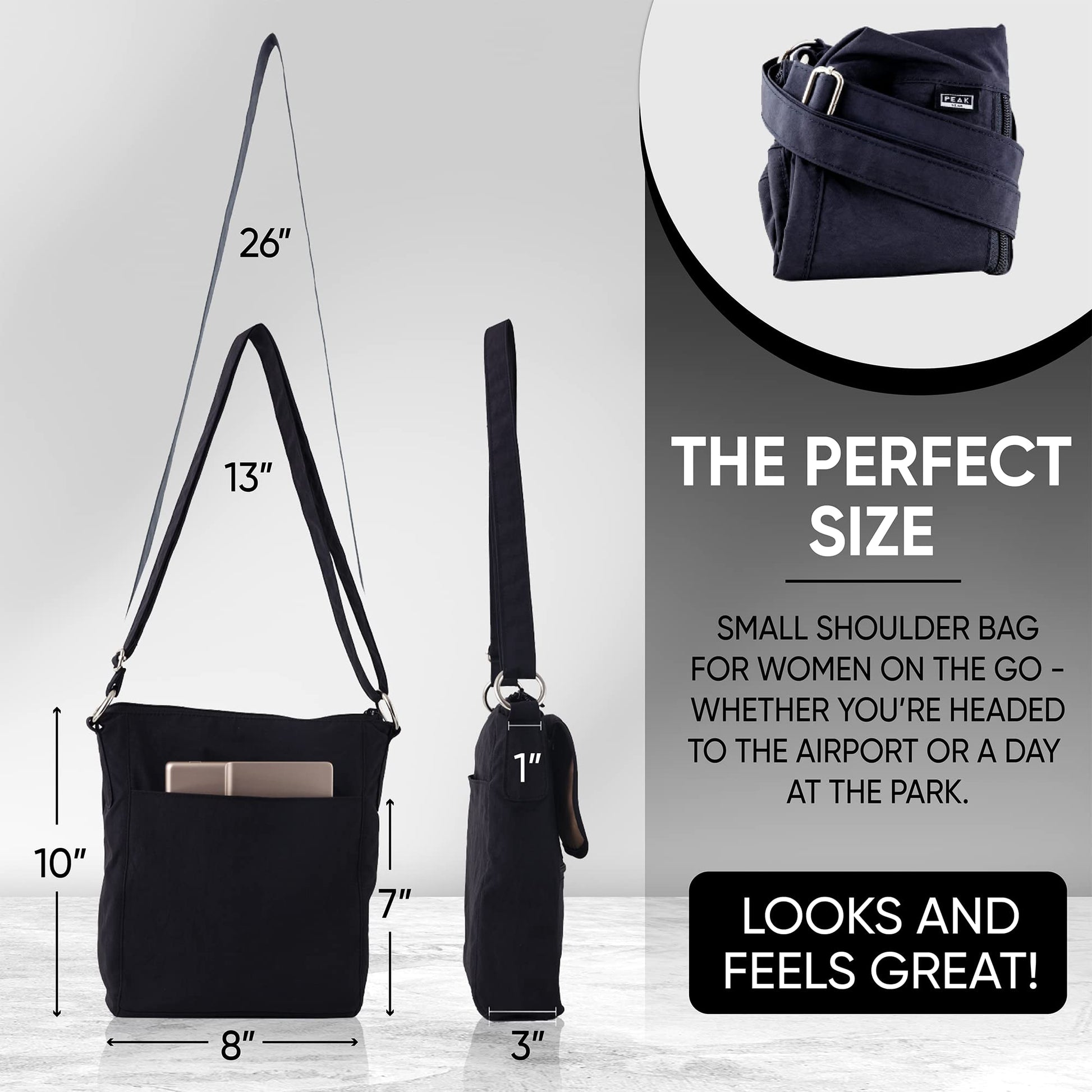 • STYLISH AND FUNCTIONAL - The perfect small travel purse. Lightweight and durable. Take this cross body handbag on your next adventure! Peak Gear's small nylon bags offer convenient organization. Extremely versatile, this is the perfect size small shoulder bag for people on the go -whether you are headed to the airport or a day at the park. Looks and feels great! (10 IN x 8 IN x 3 IN)