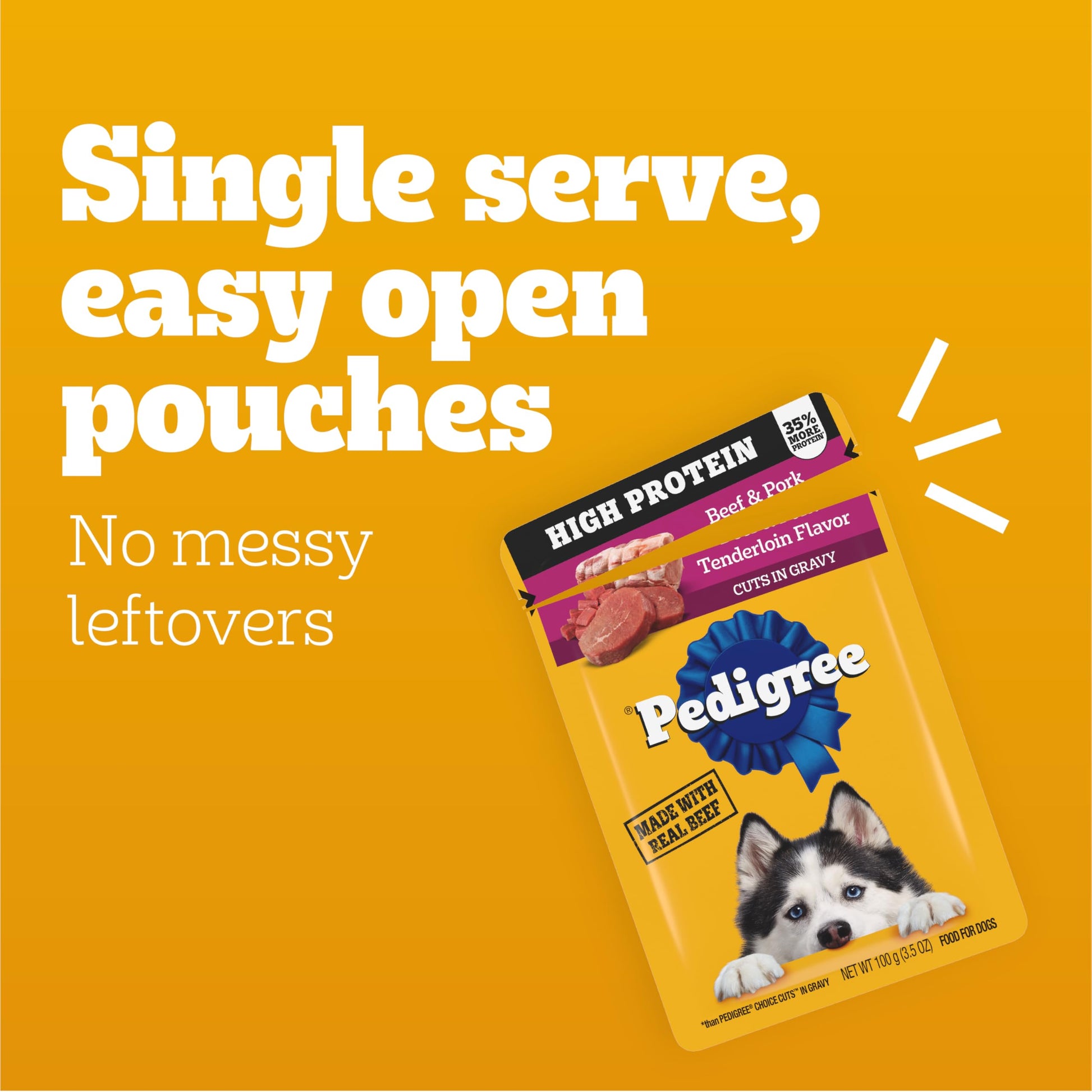 Pedigree High Protein Adult Soft Wet Dog Beef & Pork Tenderloin, 3.5 oz. Pouches, 16 Count