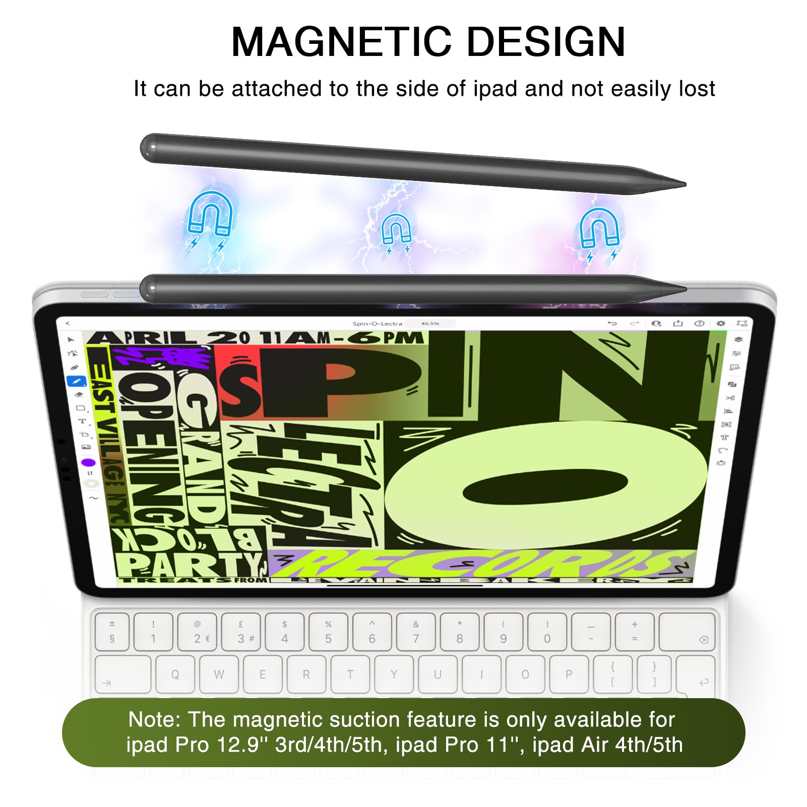 • DESIGNED FOR IPAD 2018-2025 –– The pencil for ipad is compatible with ipad 6/7/8/9/10/11 generation, ipad Air M2/M3/3/4/5 generation, ipad Mini (5/6/7 generation), ipad pro 11" M4/1/2/3/4 generation, 13" M4 and 12.9"(3/4/5/6 generation). Please note: Not work for ipad pro 12.9" 1st/2nd gen, ipad pro 10.5"/9.7", ipad 1/2/3/4/5 generation, ipad mini 1/2/3/4 and 7 gen, ipad air 1st/2nd.