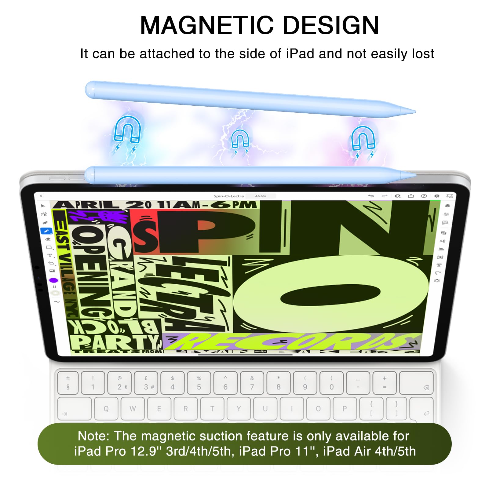 • FAST CHARGING AND MAGNETIC ADSORPTION –– Unlike other older models where it takes hours to be fully charged, our pencil for ipad has a new, improved battery that allows up to 8 hours of writing and drawing time on a full charge in 15 minutes. It also attaches to the side of your iPad so you can't lose it. (Note: Magnetic suction only works with ipad pro 12.9" 3rd/4th/5th, ipad pro 11"/13", ipad Air M2/M3/4th/5th, ipad mini 6).
