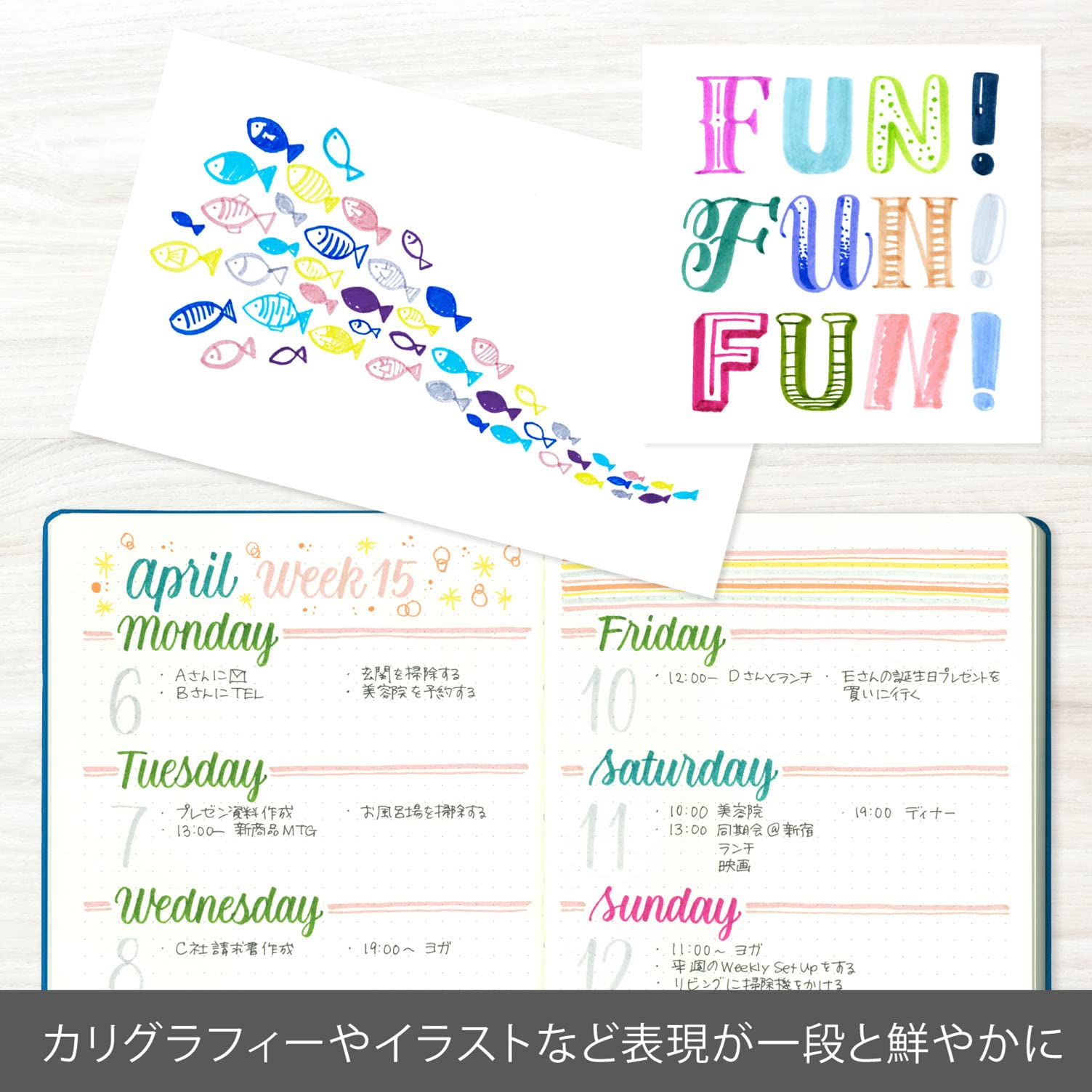 • Features: A color pen with a flexible tip that allows you to enjoy the touch of a brush